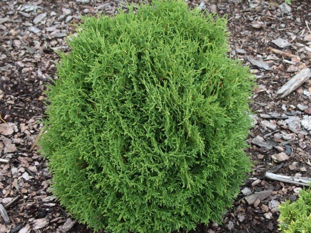 Lebensbaum 'Hoseri' - langsam wachsender Kultivar, dicht und kugelförmig. Die Nadeln sind dunkelgrün. Die jährlichen Zuwächse betragen ca. 4 cm. Im Laufe von zehn Jahren wächst sie auf eine Höhe von 40 cm und eine Breite von 80 cm. Diese Konifere ist nicht anspruchsvoll im Anbau, sie braucht nicht viel für ein schönes und attraktives Wachstum. Der beste Standort ist ein sonniger oder auch schattiger Standort, er ist auch kältebeständig. Ideal für Kübel, Steingärten, kommt sie auch in Gesellschaft mit anderen Koniferen und Ziersträuchern gut zur Geltung.