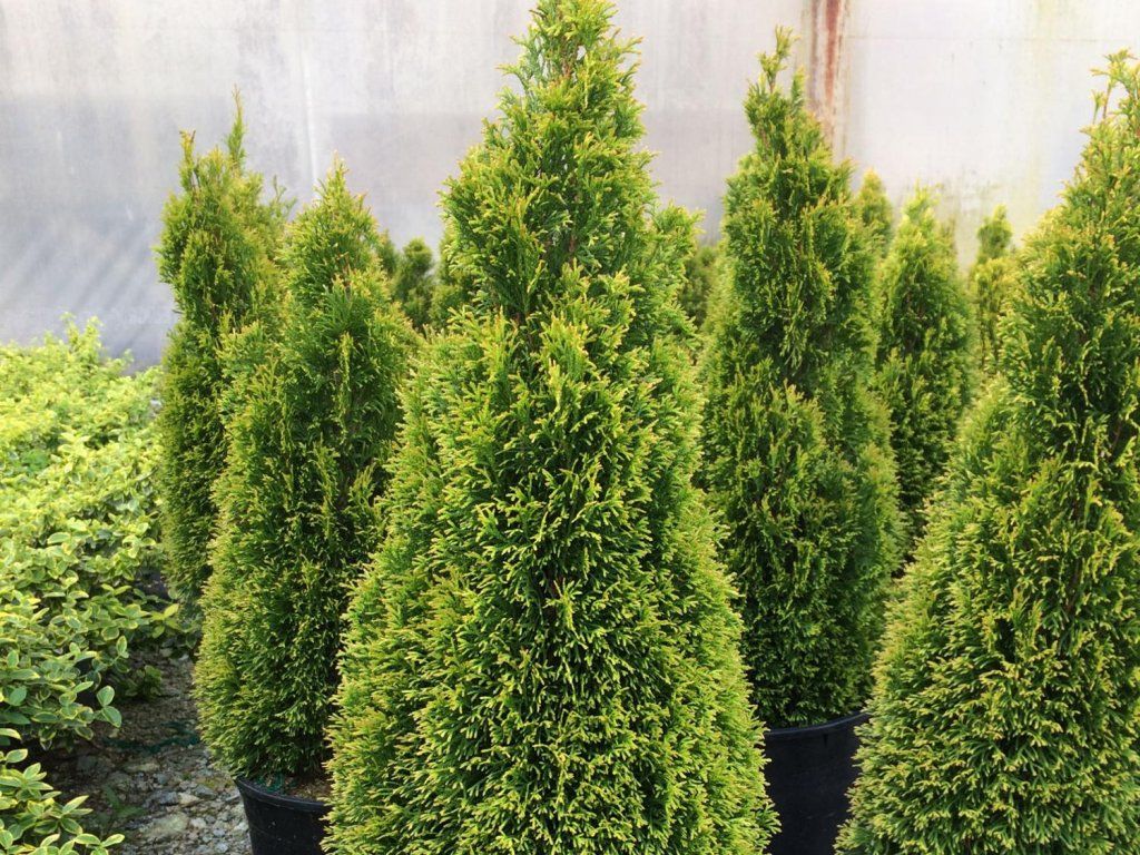 Abendländischer Lebensbaum – beliebtes Nadelgehölz aus Nordamerika, das in europäischen Gärten und Parks weit verbreitet ist. Diese Lebensbaumart ist bekannt für ihre dichte, kegelförmige Krone und ihr regelmäßiges, aufrechtes Wachstum, das Höhen von 10 bis 20 Metern erreichen kann. Die Schuppenblätter des Abendländischen Lebensbaums sind schuppig, klein und dunkelgrün, im Frühjahr können frische, hellere Triebe erscheinen. Das Wachstum ist mittelschnell bis langsam, abhängig von den Bedingungen und der Sorte. Dank seiner Widerstandsfähigkeit, Anspruchslosigkeit und seines attraktiven Aussehens ist der Abendländische Lebensbaum eines der am häufigsten verwendeten Nadelgehölze in der Gartenarchitektur und Landschaftsgestaltung.