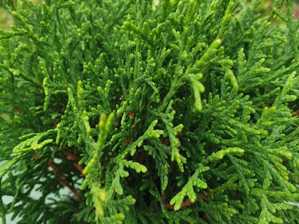 Abendländischer Lebensbaum – beliebtes Nadelgehölz aus Nordamerika, das in europäischen Gärten und Parks weit verbreitet ist. Diese Lebensbaumart ist bekannt für ihre dichte, kegelförmige Krone und ihr regelmäßiges, aufrechtes Wachstum, das Höhen von 10 bis 20 Metern erreichen kann. Die Schuppenblätter des Abendländischen Lebensbaums sind schuppig, klein und dunkelgrün, im Frühjahr können frische, hellere Triebe erscheinen. Das Wachstum ist mittelschnell bis langsam, abhängig von den Bedingungen und der Sorte. Dank seiner Widerstandsfähigkeit, Anspruchslosigkeit und seines attraktiven Aussehens ist der Abendländische Lebensbaum eines der am häufigsten verwendeten Nadelgehölze in der Gartenarchitektur und Landschaftsgestaltung.