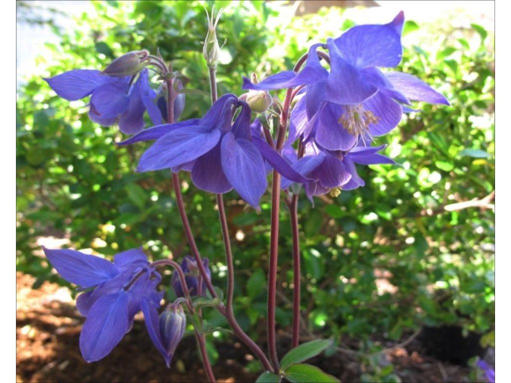Akelei Alpen- kompakte Schönheit, die im Bauerngarten am besten zur Geltung kommt. Sie kann eine Höhe von 50 cm erreichen. Die Blätter wachsen grundständig, aber auch weiter oben am Stängel. Sie sind gefiedert und haben eine tiefgrüne Farbe. Von Juni bis August blühen blauviolette Blüten. Sie bestehen aus fünf nach hinten gerichteten Blütenblättern und fünf Nektarblättern mit Spornen, die an Adlerkrallen erinnern. Die Staubgefäße sind gedrängt und gelb gefärbt. Die Akelei eignet sich für Steingärten, schattige Beete, größere Töpfe und Schalen. Besonders gut zur Geltung kommt sie in der Gruppenbepflanzung. Geeignete Partner sind Lupinen, Silberkerze, Trollblume und Storchschnabel.