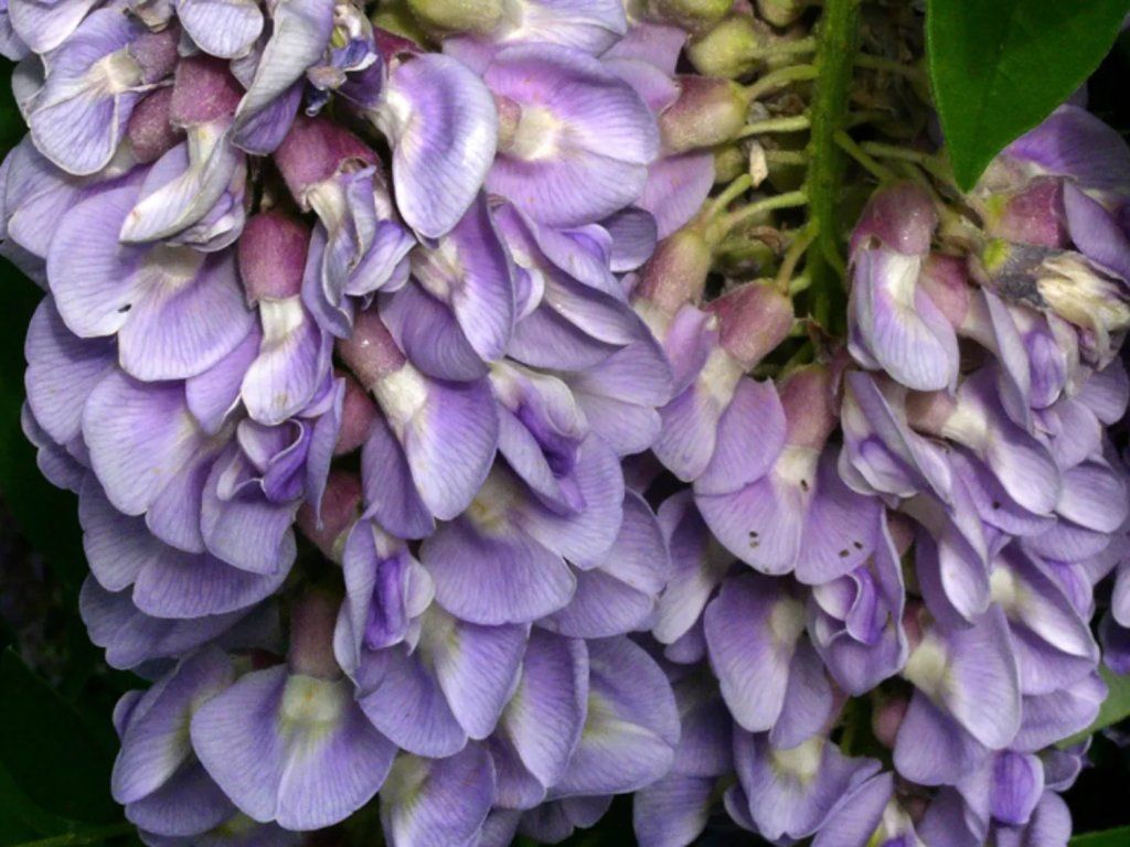 Strauch-Blauregen – stammt aus dem Südosten der USA, wächst natürlich entlang von Wasserläufen und in feuchteren Gebüschen. In Gärten wird sie wegen ihres späteren Blütebeginns geschätzt, der normalerweise die Frühlingsfröste vermeidet. Die Liane rankt sich gegen den Uhrzeigersinn um eine Stütze und erreicht unter tschechischen Bedingungen eine Höhe von etwa 5–8 m bei einer Breite von 2–4 m. Die Blätter sind unpaarig gefiedert, mit 9–15 Fiederblättchen, im Frühjahr frischgrün, im Sommer glänzend dunkelgrün. Im Juni und Juli trägt sie dichte, hängende Trauben von 10–15 cm Länge, die aus schmetterlingsförmigen Blüten in Lavendelviolett mit einem zarten, reinen Duft bestehen. Nach der Blüte entwickeln sich schmale, glatte Samenhülsen, die bis zum Winter an der Pflanze verbleiben. Samen und Hülsen sind giftig und werden nicht zum Verzehr verwendet. Im Vergleich zu asiatischen Arten ist das Wachstum kompakter und die Pflanze lässt sich besser in einem für kleinere Gärten akzeptablen Rahmen halten. Die Verwendung umfasst Pergolen, Bögen, sonnige Wände oder robuste Spaliergerüste. In der Komposition lässt sie sich gut mit spät blühenden Kletterrosen, Jasmin, Berberitzen und Ziergräsern kombinieren, die den vertikalen Charakter der Pflanzung hervorheben. Die Blüten sind eine große Anziehungskraft für bestäubende Insekten. Eine Besonderheit ist die glatte Oberfläche reifer Hülsen und kürzere Trauben als bei W. sinensis oder W. floribunda, was auch in kleineren Räumen ein gepflegtes Aussehen gewährleistet.