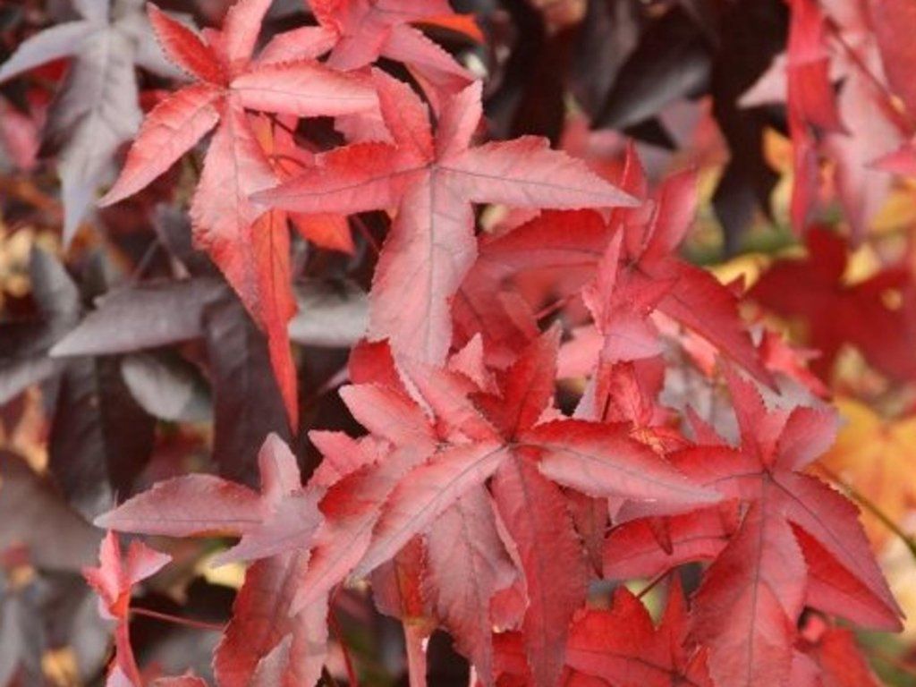 Amberbaum stammt ursprünglich aus den nordöstlichen Teilen Nordamerikas und Mittelamerikas, wo er als mittelgroßer laubabwerfender Baum wächst. Seine Höhe liegt zwischen 15 und 30 m und er kann eine kegelförmige Form mit einer breiten Krone haben. Die Blätter von Liquidambar styraciflua bestehen aus 3-7 Lappen und werden mit ihren bunten Farbtönen zu einem Schmuckstück für Gärten, nicht nur im Frühling, wenn sie grün sind, sondern besonders im Herbst, wenn sich ihre Farben ändern. Sie nehmen oft orange, rote und violette Farbtöne an, was dem Baum ein wunderschönes und markantes Aussehen verleiht, das nicht nur Gärtner, sondern auch Passanten lieben werden. Dieses Gehölz ist wegen seiner bunten Herbstblätter in Parks und Ziergärten sehr beliebt. Da er die Fähigkeit besitzt, so schöne Farbtöne zu entwickeln, wird er häufig als Solitär oder zur Belebung größerer Flächen in Städten eingesetzt. Es gibt eine ganze Reihe von Kultivaren, die sich in Höhe, Kronenform, Blattgröße und Intensität der Herbstfarbwechsel unterscheiden. Der Amberbaum ist eine vielseitige und anspruchslose Pflanze, die jeden Garten verschönern und bereichern kann. Er ist an die Kulturbedingungen nicht sehr anspruchsvoll. Er gedeiht am besten auf neutralen bis leicht sauren, ausreichend feuchten Böden, was sowohl kiesige und sandige als auch lehmige und sumpfige Substrate umfassen kann. Für das Wachstum ist eine zuverlässige Wasserversorgung erforderlich.