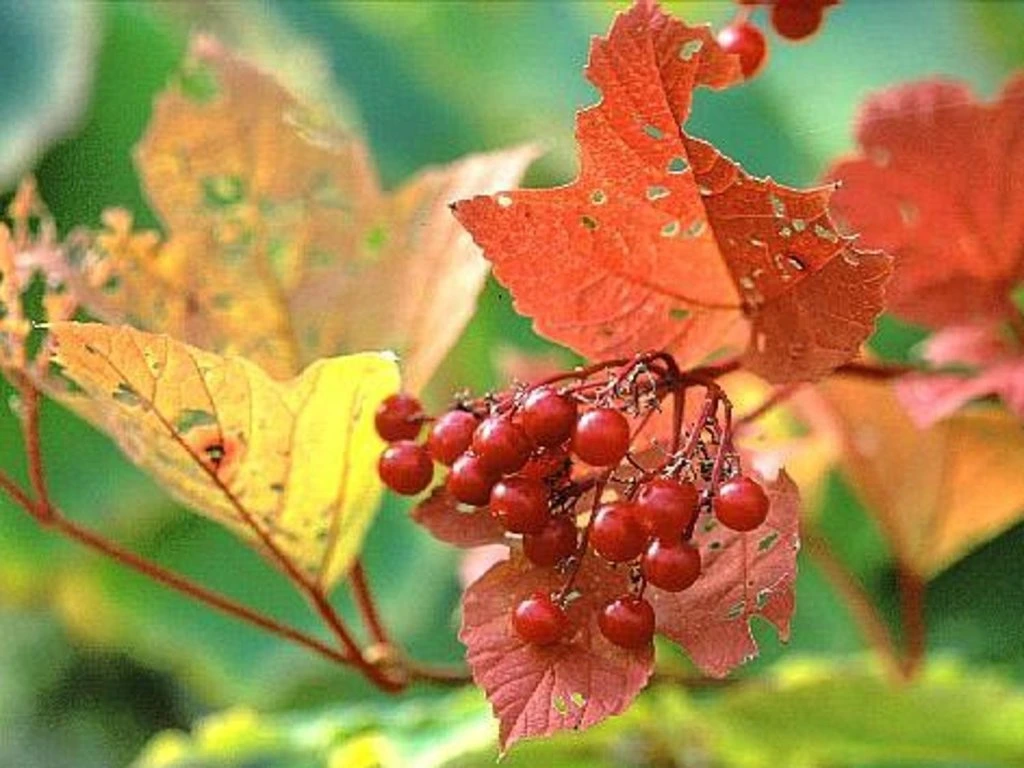 Amerikanischer Schneeball 'Dart's Graduate' - Ein kompakter Zierstrauch mit dichter Verzweigung, der bis zu 2 m hoch wird. Die Blätter sind länglich, breit und haben als frisch austreibende Blätter einen purpurfarbenen Schimmer, bevor sie sich dann allmählich grün färben. Im Herbst hingegen nehmen sie eine wunderschöne, leuchtend rote Farbe an. Sie blüht Anfang Juni mit weißen oder cremeweißen Blüten. Nach der Blütezeit ist der Strauch voller Beeren, die sauer und saftig schmecken und reich an Vitamin C sind. Nach dem Entfernen der Kerne können die Beeren zu Marmeladen und Konfitüren verarbeitet werden. Geeignet für niedrige Hecken oder Gruppenpflanzungen.
