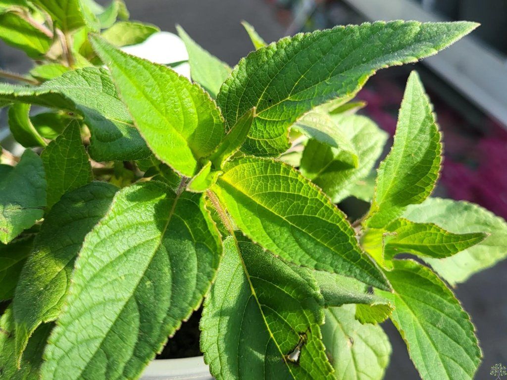 Ananas-Salbei - eine dekorative und aromatische Staude, die 60–80 cm hoch wird und aufrechte, dicht belaubte Büschel bildet. Die Blätter sind hellgrün, leicht behaart und verströmen beim Zerreiben einen intensiven Duft, der an frisch geschnittenen Ananas erinnert. Von September bis Anfang Winter erscheinen leuchtend rote Blüten in Büscheln an der Pflanze, die Schmetterlinge anziehen und zur ästhetischen Gestaltung von Beeten oder Behältern beitragen. Blüten und Blätter werden in der Küche zum Verfeinern von Obstsalaten, Desserts, Marmeladen, Gelees, Tees und Getränken oder Cocktails verwendet, wo sie ein feines Ananasaroma verleihen. Sie hat auch heilende Eigenschaften, wirkt nachweislich antidepressiv und hilft bei Erkältungen, Kopf-, Hals- oder Zahnschmerzen. Die Pflanze eignet sich für Staudenbeete, Solitärpflanzungen in Behältern oder farbige Gruppen mit anderen Kräutern und Zierpflanzen. Dank der Kombination aus dekorativen Blüten, aromatischen Blättern und heilenden Eigenschaften ist sie eine attraktive Wahl für Gärten und die Kräuterküche.