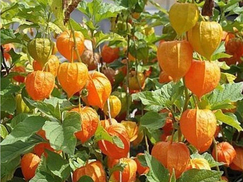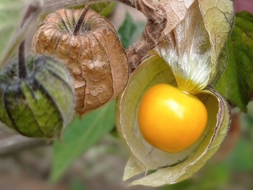 Physalis peruviana - eine Obstsorte aus der Familie der Nachtschattengewächse (Solanaceae), die eng mit Tomaten, Paprika oder Auberginen verwandt ist. Ursprünglich stammt sie aus den Bergregionen Südamerikas, insbesondere aus Peru, Kolumbien und Ecuador, wo sie seit Jahrhunderten angebaut wird. Nach Europa kam sie während der Zeit der Entdeckungen und verbreitete sich allmählich als interessante kleinfrüchtige Obstpflanze. Sie bildet einen verzweigten, krautigen Strauch, der etwa 80–120 cm hoch und 60–100 cm breit wird. Die Blätter sind weich, hellgrün, leicht gewellt und fein behaart. Im Juni und Juli erscheinen kleine, glockenförmige Blüten in cremefarbener oder gelber Färbung mit dunklerem Zentrum. Nach der Blüte entwickelt sich ein charakteristischer, aufgeblasener Kelch, der die Frucht allmählich umhüllt und eine laternenartige Hülle bildet. Im Inneren reift eine kugelförmige, orangefarbene Frucht mit einem Durchmesser von etwa 1,5–2 cm heran. Das Fruchtfleisch ist saftig und aromatisch, der Geschmack ist ausgewogen süß-sauer und wird oft mit einer Kombination aus Ananas, Stachelbeere und Zitrusfrüchten verglichen. Die Früchte enthalten Vitamin C, Provitamin A, Polyphenole und Ballaststoffe. In der Küche werden sie frisch, in Obstsalaten, Desserts, Marmeladen, Kuchen oder als dekoratives Element für Süßwaren verwendet. Dank ihrer ausgeprägten Farbe und Kelchform wirkt die Pflanze auch in Zierpflanzungen dekorativ.