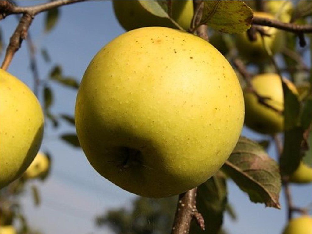 Apfelbaum 'Denár' - Früchte vom Typ Golden Delicious, leuchtend gelb ohne Rostflecken. Geeignet für höhere Lagen, wo die Sorte Golden Delicious nicht gedeiht. Ziemlich resistent gegen Schorf, sehr ertragreich, mittelwüchsig. Die Früchte werden Mitte September geerntet. Der Verzehrreife wird von Dezember bis Februar erreicht, je nach Anbaulage.