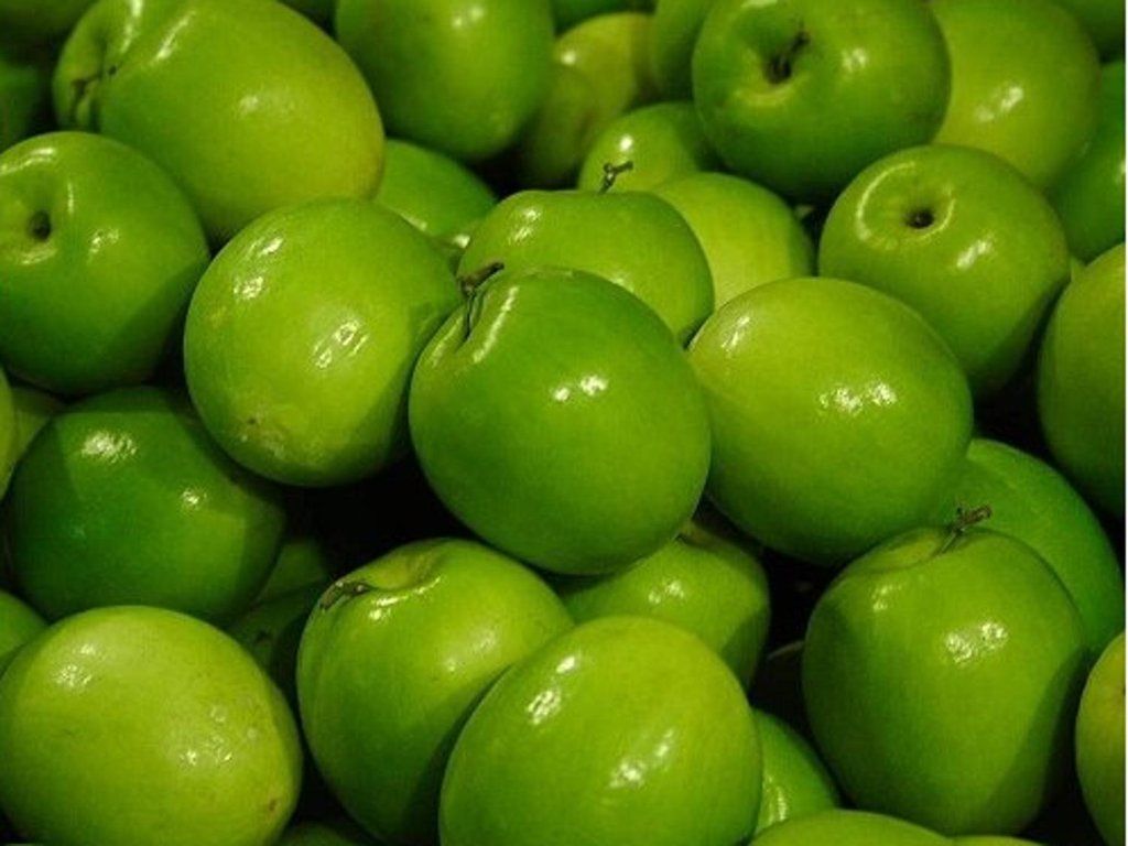 Apfel 'Granny Smith' - eine Sorte aus Australien, die Früchte zeichnen sich durch eine grüne, glänzende Farbe, eine feste Struktur und einen scharfen Geschmack aus. Mittelmäßig resistent gegen Mehltau und Schorf. Die Früchte sind mittelgroß. Das Fruchtfleisch ist saftig und süß. Wir ernten in der ersten Novemberhälfte, die Früchte sind bis Mai verzehrfertig.