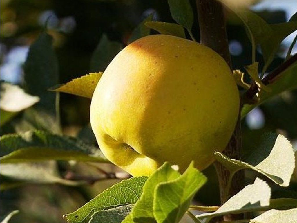 Apfelbaum 'Opál' - neue tschechische Sorte, geeignet für den ökologischen Anbau. Die Sorte ist schorfresistent und hochresistent gegen Mehltau. Die Früchte sind mittelgroß, kugelförmig, goldgelb gefärbt. Das Fruchtfleisch ist fest, saftig und deutlich süß. Die Ernte erfolgt Ende September, die Genussreife wird im Oktober erreicht, bei Lagerung im Keller hält sie bis April. Äpfel welken nicht, werden nicht weich und werden nach dem Anschneiden nicht braun.