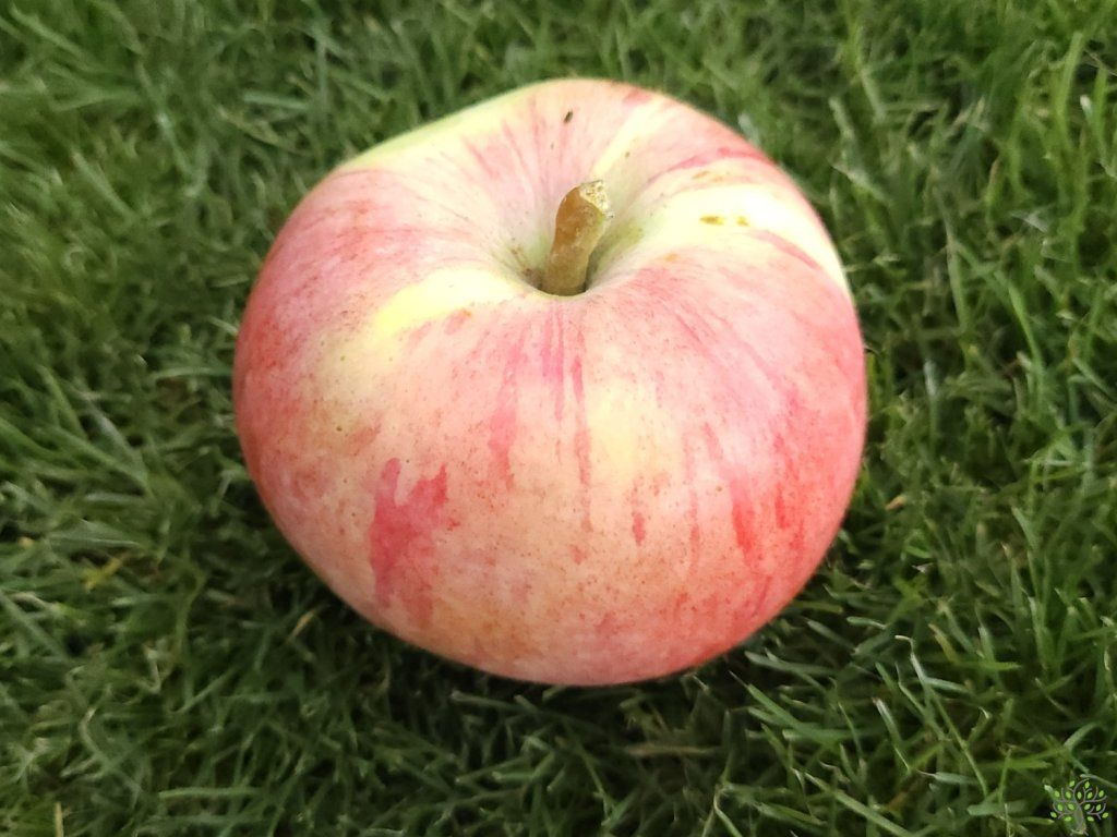 Apfelbaum 'Peasgood's Nonsuch' - attraktive Apfelsorte aus England. Die Früchte sind mittelgroß bis groß. Die Schale ist goldgrün mit roter Marmorierung, später wird sie gelb. Das Fruchtfleisch ist saftig, hellcremig und weich. Geschmacklich sind sie sehr gut und süß-säuerlich. Geeignet für den direkten Verzehr. Es zeichnet sich durch eine gute Frost- und Krankheitsresistenz aus.
