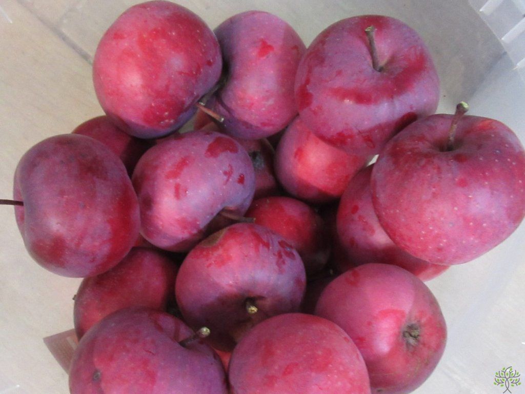 Apfelbaum 'Red Love' - Schweizer Delikatesse wieder in unserem Angebot! Die Bäume wachsen mittelstark, bilden gut Fruchtholz und blühen auch am einjährigen Holz. Die Knospen sind dunkel purpurrot und die Kronblätter leuchten nach der Blüte in allen Rosatönen. Ein Zier- und Nutzbaum in einem! Die Äpfel werden überdurchschnittlich groß (200g +) und sind flachkugelförmig. Die Schale hat eine dunkelweinrote Farbe mit weißen Lentizellen, auch die Fruchtstiele und Blattstiele sind weinrot. Das rote Fruchtfleisch mit rosa und weißer Marmorierung schmeckt hervorragend süß-säuerlich mit einer edlen Note von Roséwein. Die Ernte der schönen Äpfel erfolgt Ende September, sie erreichen die Konsumreife in zwei Wochen und sind bis Dezember, teils bis Januar lagerfähig. ‘Red Love‘ leidet weder unter Schorf noch Mehltau.