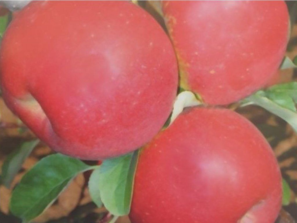 Apfelbaum 'Rucla' - eine Schwesterkultivar der Sorte ‘Rubinstep‘, die aus derselben Elternkombination (‘Clivia‘ x ‘Rubín‘) stammt. Wächst kräftig und bildet kugelförmige, ausladende Kronen. Die Früchte werden meist einzeln oder zu zweit angesetzt und erfordern daher keine aufwendige Ausdünnung. Sie unterscheidet sich von ‘Rubinstep‘ durch größere, kugelförmige Früchte und eine flächendeckende, dunkelrote, bei gut besonnten Äpfeln bis braunrote, außerordentlich schöne Farbe. Das cremige Fruchtfleisch hat eine feine Struktur, höhere Saftigkeit und einen süßlichen, stark aromatischen Geschmack, der an den väterlichen ‘Rubín‘, verfeinert mit exotischen Gewürzen, erinnert. Die Ernte Anfang Oktober erleichtert ein längerer Stiel, der Verzehr erfolgt kurz nach der Ernte und hält bis Februar an. Die Resistenz gegen Pilzkrankheiten ist höher. Auch große Früchte leiden nicht unter Bitterfäule und Lagerkrankheiten.