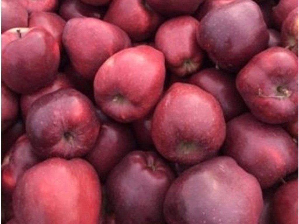 Apfelbaum 'Starkrimson' - es handelt sich um eine Mutation der Sorte Red Delicious. Die Früchte sind groß, kegelförmig. Das Fruchtfleisch ist gelb, knackig, mit sehr angenehmem Geschmack. Er reift Ende Oktober, zum Verzehr ist er ab Dezember geeignet. Ideal für die Lagerung. Es ist eine ertragreiche Sorte. Sie ist sehr widerstandsfähig gegen Mehltau und auch gegen Frost.
