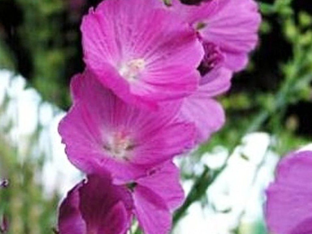 Malva arborea hybr. 'Purpetta' - eine kurzlebige Staude, die bis zu 100 cm hoch wird. Aus einem Büschel runder Grundblätter wächst ein kräftiger Stängel mit einem hohen, endständigen Blütenstand. Die Blüten sind schalenförmig, 3,5-5 cm breit und haben eine seidige Oberfläche, gefärbt in tiefem bis hellem Rosa. Sie blüht von Juli bis September. Sie benötigen Sonne und gut durchlässigen Boden. Die Pflanze ist vollkommen winterhart.