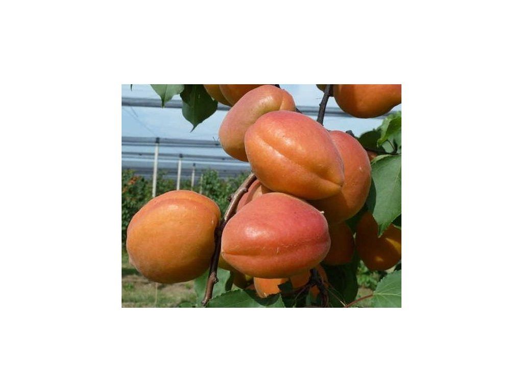 Aprikose 'Faralia' - schön gefärbte Aprikose, die in der ersten Julidekade reift, mittelgroße Früchte mit einer ausgeprägten roten Wange. Gleichmäßige Erträge jedes Jahr, selbstfruchtbar. Sie tritt früh in die Fruchtbildung ein und trägt über die gesamte Länge der Triebe, was eine hohe und stabile Fruchtbarkeit garantiert. Stammt ebenfalls aus der Züchtungsreihe Carmingo®.