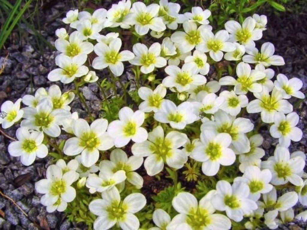 Felsenmutterkraut Arendsii 'Golden Falls' - eine bodendeckende Zierstaude, die für ihre attraktiven Blüten und ihr polsterbildendes Wachstum geschätzt wird. Die Sorte 'Golden Falls' wird vor allem für ihr goldfarbenes Laub geschätzt, das auch außerhalb der Blütezeit seine Farbe behält und im Halbschatten als heller Akzent zwischen Steinen wirkt. Die Pflanze bildet sitzende Rosetten aus kleinen, eng keilförmigen Blättern von immergrünem bis halbimmergrünem Charakter und wächst allmählich zu einem Teppich von normalerweise 20–30 cm Breite zusammen. Das Blattpolster ist 5–10 cm hoch und erhebt sich zur Blütezeit auf etwa 10–15 cm. Im April bis Mai erscheinen kurze Stiele mit zahlreichen fünfZähligen weißen Blüten, die wie ein feiner Schaum über den Blättern wirken und den kleinen Bestäubern frühen Nektar bieten. Der Duft ist meist unauffällig. Die Pflanze ist nicht dornig oder giftig und nicht zum Verzehr bestimmt. In der Komposition eignet sie sich als heller Rand von Wegen, Füllung von Fugen von Mauern und Steintreppen oder als Pflanzung in Alpinbecken, wo sie gut mit Glockenblumen, Thymian, niedrigen Fetthennen, Glockenblumen oder Frühlingszwiebeln harmoniert. Das goldgelbe Blatt hebt auch dunklere Texturen hervor, zum Beispiel Purpurglöckchen, Farne oder niedrige Seggen.
