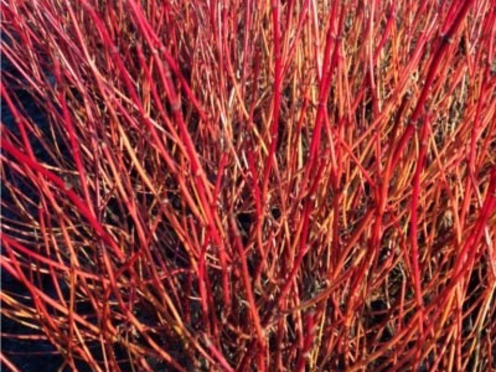 Cornus sericea 'Kelsey's Dwarf' - ein kleiner, attraktiver Strauch, der je nach Kulturbedingungen eine Höhe von etwa 60-100 cm erreicht. Die Blüten erscheinen im Mai und sind cremeweiß gefärbt. Die Blätter sind frischgrün und färben sich im Herbst orange, rot und gelb. Die kahlen Zweige sind leuchtend rot und bilden eine sehr dekorative Wintersilhouette, die den Garten auch in den Wintermonaten erhellt. Der Hartriegel ist pflegeleicht und gut frosthart. Dank seines geringen Wuchses ist er ideal für die Kultur im Kübel und kommt auch als Solitärpflanze gut zur Geltung.