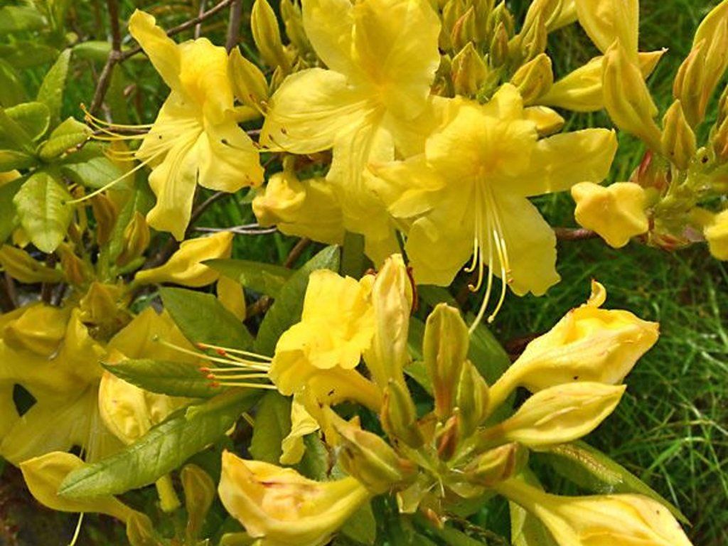 Azalee 'Anneke' - eine sommergrüne, großblütige Azalee aus der Knap Hill Exbury Hybridgruppe, botanisch Rhododendron 'Anneke'. Sie gehört zur Familie der Heidekrautgewächse und wurde in den 1960er Jahren vom britischen Züchter M. C. (Denny) Pratt gezüchtet und um 1964 in den Handel gebracht. Später wurde sie vom niederländischen Baumschuler Fred de Jong ausgewählt und nach seiner Tochter benannt; die Sorte erhielt 1987 die Goldmedaille auf der Flora Nova-Ausstellung. Unter Gartenbedingungen in der Tschechischen Republik bildet sie einen mittelgroßen Strauch mit einer üblichen Höhe von 1,5–1,8 m und ähnlicher Breite, mit einem leicht aufrechten bis ausladenden Wuchs. Die Blätter sind elliptisch, frischgrün und färben sich im Herbst in Gelb-, Orange- bis Bronzetönen. Die größte Zierde sind die großen, trichterförmigen Blüten in kugelförmigen Blütenständen, die von Mitte Mai bis Juni erscheinen. Die einzelnen Blüten sind zitronen- bis goldgelb mit einer ausgeprägteren goldgelben Zeichnung im Schlund, haben lange, leicht gebogene Staubgefäße und einen angenehmen, ziemlich starken Duft, der Hummeln und andere Bestäuber anlockt. Die meisten Teile der Pflanze sind, wie bei anderen Rhododendren auch, beim Verzehr giftig, daher wird sie weder zum Essen noch als Heilkraut verwendet. In der Komposition wird sie als Solitär in einem Heidebeet, in Kombination mit niedrigeren Rhododendren, Schneebällen oder Ziergräsern, oder in kleineren Gruppen eingesetzt, wo sie zur Blütezeit einen markanten Lichtpunkt bildet.