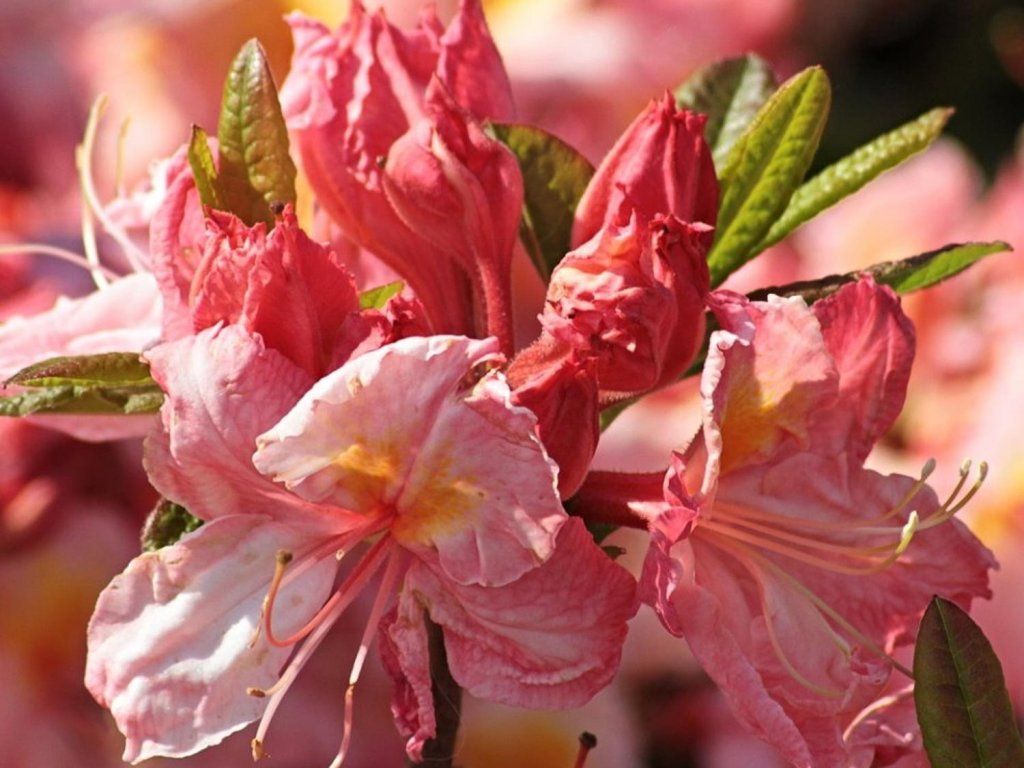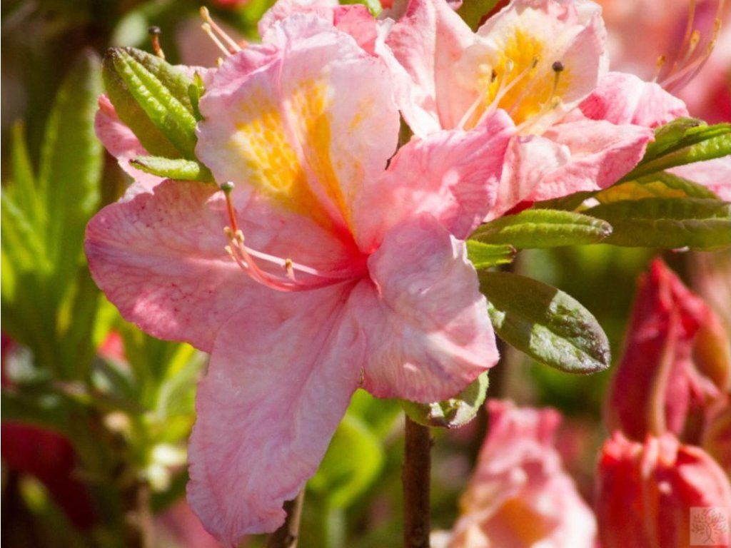 Azalee gehört zur selben Gruppe wie die viel größeren Rhododendren. Im Gegensatz zu ihnen sind Azaleen kleiner (obwohl es auch größere Exemplare gibt) und einige Kultivare fallen im Herbst teilweise oder ganz ab. Während Rhododendren eher glockenförmige Blüten haben, ähneln die Blüten von Azaleen in ihrer Form einem Trichter. Für diejenigen, die nicht viel Platz haben, sind japanische Azaleen absolut ideal, da sie sich eher in die Breite als in die Höhe ausdehnen. Die meisten Azaleen bevorzugen Halbschatten (direkte Sonne kann Sonnenbrand verursachen, zu wenig Licht führt zu einer Verzweigung der Äste und Blüten). Sie blühen von Mai bis Juni – verblühte Blüten werden vorsichtig ausgebrochen, damit sie den Strauch nicht weiter belasten.