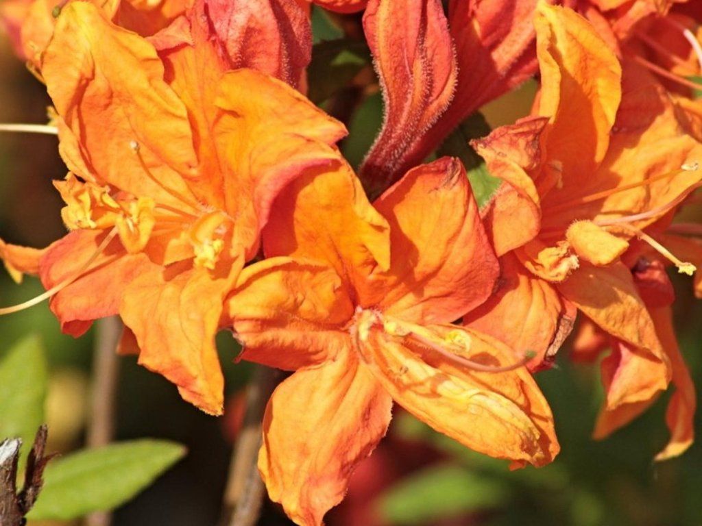 Azaleen gehören zur gleichen Gruppe wie die viel größeren Rhododendren. Im Gegensatz zu ihnen sind Azaleen kleiner (obwohl es auch größere Exemplare gibt) und einige Kultivare werfen im Herbst teilweise oder ganz ihr Laub ab. Während Rhododendren eher glockenförmige Blüten haben, ähneln die Blüten von Azaleen in ihrer Form einem Trichter. Für diejenigen, die nicht viel Platz haben, sind japanische Azaleen, die eher in die Breite als in die Höhe wachsen, absolut ideal. Die meisten Azaleen bevorzugen Teilsonne oder Halbschatten, da direkte Sonne zu Sonnenbrand führen kann und zu wenig Licht zu Vergeilung der Triebe und Blüten führt. Sie blühen von Mai bis Juni. Verblühte Blüten vorsichtig ausbrechen, damit der Strauch nicht weiter ausgelaugt wird.