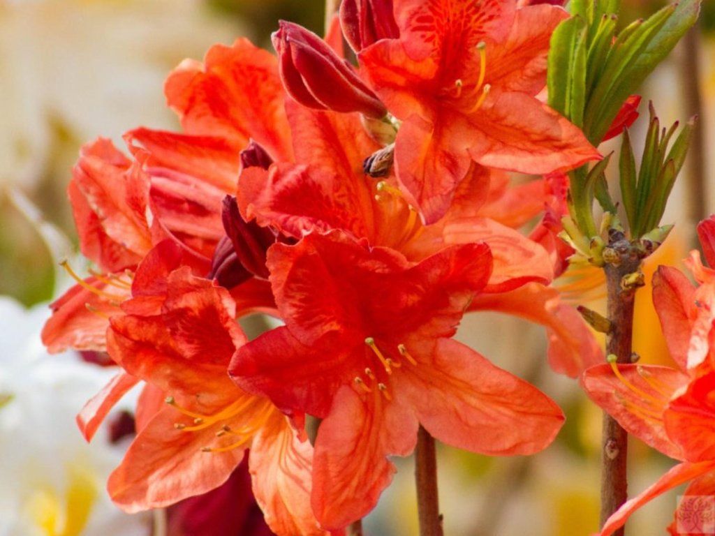 Sie gehört zur selben Gruppe wie Rhododendren. Im Gegensatz zu ihnen sind Azaleen kleiner (obwohl es auch größere Exemplare gibt) und einige Kultivare werfen im Herbst teilweise oder ganz ihr Laub ab. Während Rhododendren eher glockenförmige Blüten haben, ähneln die Blüten von Azaleen in ihrer Form einem Trichter. Für diejenigen, die nicht viel Platz haben, sind japanische Azaleen, die eher in die Breite als in die Höhe wachsen, absolut ideal. Die meisten Azaleen bevorzugen Teilsonne oder Halbschatten, da direkte Sonne zu Sonnenbrand führen kann und zu wenig Licht zu Vergeilung der Triebe und Blüten führt. Sie blühen von Mai bis Juni. Verblühte Blüten vorsichtig ausbrechen, damit der Strauch nicht weiter ausgelaugt wird.