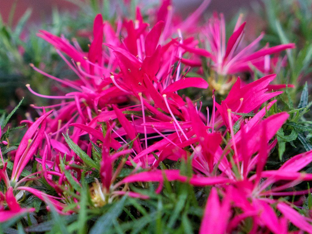 Azaleen gehören zur gleichen Gruppe wie die viel größeren Rhododendren. Im Gegensatz zu ihnen sind Azaleen kleiner (obwohl es auch größere Exemplare gibt) und einige Kultivare werfen im Herbst teilweise oder ganz ihr Laub ab. Während Rhododendren eher glockenförmige Blüten haben, ähneln die Blüten von Azaleen in ihrer Form einem Trichter. Für diejenigen, die nicht viel Platz haben, sind japanische Azaleen, die eher in die Breite als in die Höhe wachsen, absolut ideal. Die meisten Azaleen bevorzugen Teilsonne oder Halbschatten, da direkte Sonne zu Sonnenbrand führen kann und zu wenig Licht zu Vergeilung der Triebe und Blüten führt. Sie blühen von Mai bis Juni. Verblühte Blüten vorsichtig ausbrechen, damit der Strauch nicht weiter ausgelaugt wird.