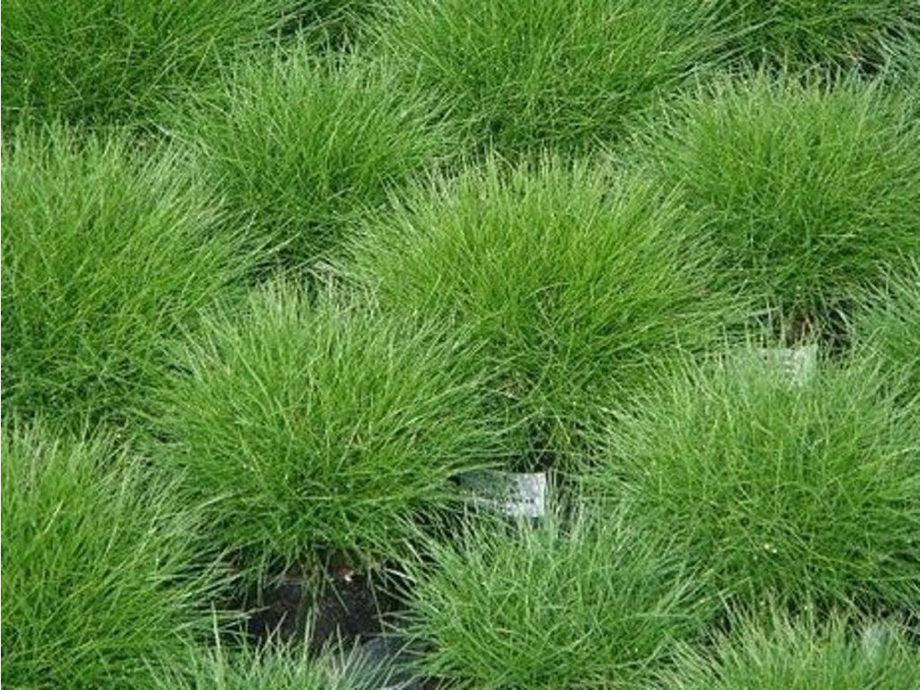 Schwingel-Rispengras - niedriges Gras, das schöne, dichte, smaragdgrüne Polster von 10-15 cm Höhe bildet. Gilt als die schönste der grünblättrigen Schwingel. Benötigt trockenen Boden in voller Sonne oder Halbschatten. An feuchten Standorten altert es schnell. Blüht mit 25 cm hohen gelbgrünen Ähren. Eignet sich für Steingärten, Heidegärten, Tröge und kleine Gruppen.