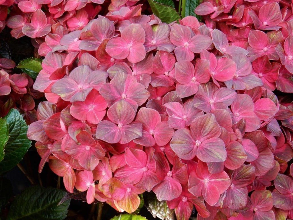 Hortensie macrophylla 'Chocolate' - ein kompakt wachsender, laubabwerfender Strauch, der sich durch seinen wunderschönen Blütenstand auszeichnet. Im ausgewachsenen Zustand erreicht er eine Höhe von 0,8 - 1 m. Halbkugelförmige Blütenstände sind in Weinrot und Rot gefärbt. Sie blühen reichlich von Juni bis September. Die Blätter sind dekorativ, dunkelgrün. Kommt als Solitärpflanze hervorragend zur Geltung. Sieht in Kombination mit Rhododendren und Azaleen sehr schön aus. Die Blütenfarbe hängt vom pH-Wert des Bodens ab. Saurerer Boden fördert die blaue Blütenfarbe, stärker basischer Boden hingegen die Rosafärbung. Idealerweise wählen wir einen Standort im Halbschatten. Die Bauernhortensie blüht am Holz des Vorjahres, daher entfernen wir im Frühjahr nur die durch Frost beschädigten Triebspitzen. Dieser Strauch eignet sich hervorragend als Solitär, aber auch im Garten, im Beet oder auf der Terrasse. Insgesamt ist die Hortensie ein beliebtes Element für Gärten und verleiht jedem Garten ein erhabenes und romantisches Flair.