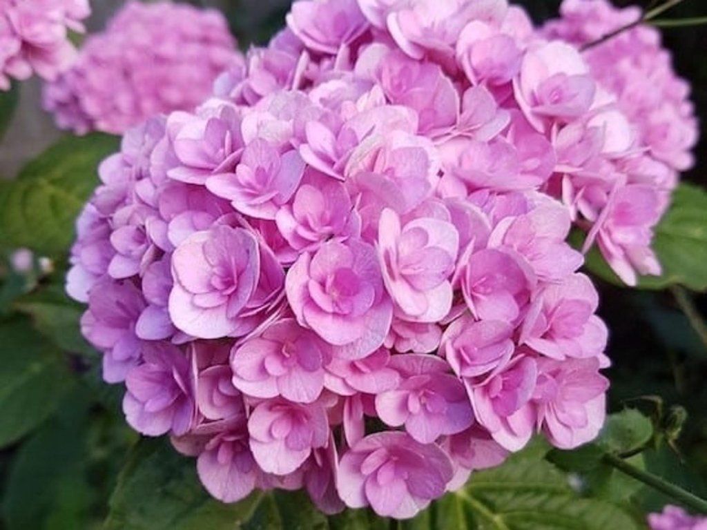 Großblättrige Hortensie 'Double Pink Love' – eine Sorte aus der beliebten Love-Gruppe, die sich durch kugelförmige Blütenstände aus gefüllten Blüten auszeichnet. Die Grundart Hydrangea macrophylla stammt aus den Bergregionen Japans, wo sie Sträucher von 1–1,5 m Höhe mit großen, tiefgrünen Blättern bildet. 'Double Pink Love' wächst kompakter, normalerweise bis zu einer Höhe von etwa 1 m und ähnlicher Breite, mit dichter Verzweigung und kräftigen, gut belaubten Trieben. Die Blätter sind dunkelgrün, glänzend, eiförmig-breit, mit einem fein gesägten Rand. Die Blütenstände sind kugelförmig bis leicht abgeflacht, 15–20 cm breit, gebildet aus vielen vollgefüllten Blüten in Rosatönen. Die Farbe variiert je nach pH-Wert des Bodens und Aluminiumgehalt; in leicht saurem Boden kann sie kühle Rosatöne bis leicht violette Töne annehmen, in alkalischerem Boden färben sich die Blüten oft in wärmere Rosatöne. Die Blütezeit ist von Juli bis September, bei günstigem Wetter bis Oktober; die Blüten werden allmählich grün und erzeugen einen interessanten Herbsteffekt. Die Blütenstände eignen sich auch zum Schnitt und für Trockenarrangements. Sie ist mittelschwer im Anbau, aber wenn Sie ihr die richtigen Wachstumsbedingungen bieten, wird sie Ihnen mit kräftigem Wachstum und reichen Blütenständen danken.