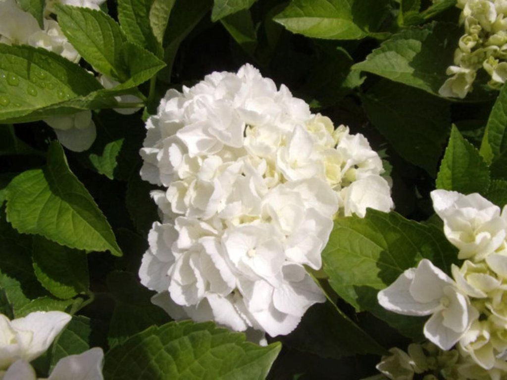 Hortensie macrophylla 'Ice Boy®' - eine wunderschöne Sorte der beliebten Hortensie, die Sie mit ihren reichen, reinweiß gefärbten Blüten verzaubern wird. Bildet einen kompakt wachsenden Strauch, der je nach Kulturbedingungen eine Höhe von 100 - 200 cm erreicht. Vom Anfang Juni bis Ende September ist er vollständig mit üppigen, großen Blüten bedeckt, die in kugelförmigen Gruppen angeordnet sind und in weißer Farbe strahlen. Sie kontrastieren hervorragend mit den Blättern, die groß, dunkelgrün, eiförmig und am Rand leicht gezähnt sind. Hortensien sollten in keinem Garten fehlen, egal ob wir ihren Platz in einer Gruppenbepflanzung wählen oder sie als Solitärpflanze verwenden. Die Bauernhortensie blüht am Holz des Vorjahres, daher entfernen wir im Frühjahr nur die durch Frost beschädigten Triebspitzen. Insgesamt ist die Hortensie ein beliebtes Element für Gärten und verleiht jedem Garten ein erhabenes und romantisches Flair. Die Hortensie ist mittelschwer anspruchsvoll, aber wenn Sie ihr günstige Kulturbedingungen bieten, wird sie sich mit kräftigem Wachstum und reicher Blüte bedanken.