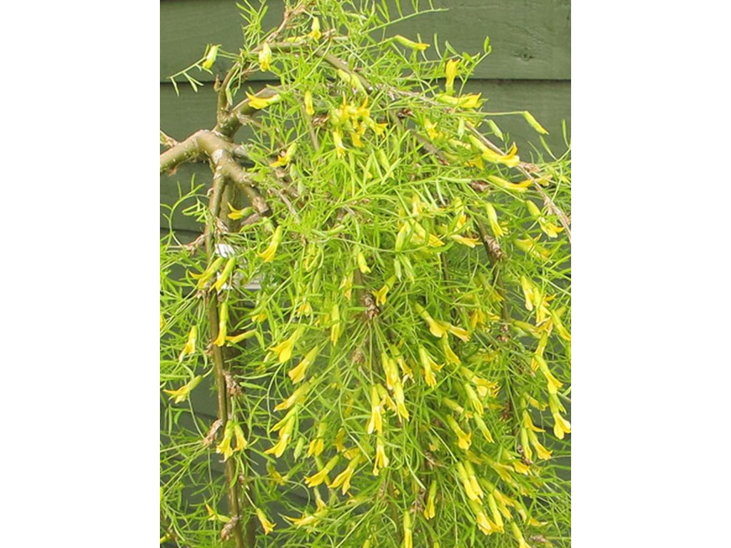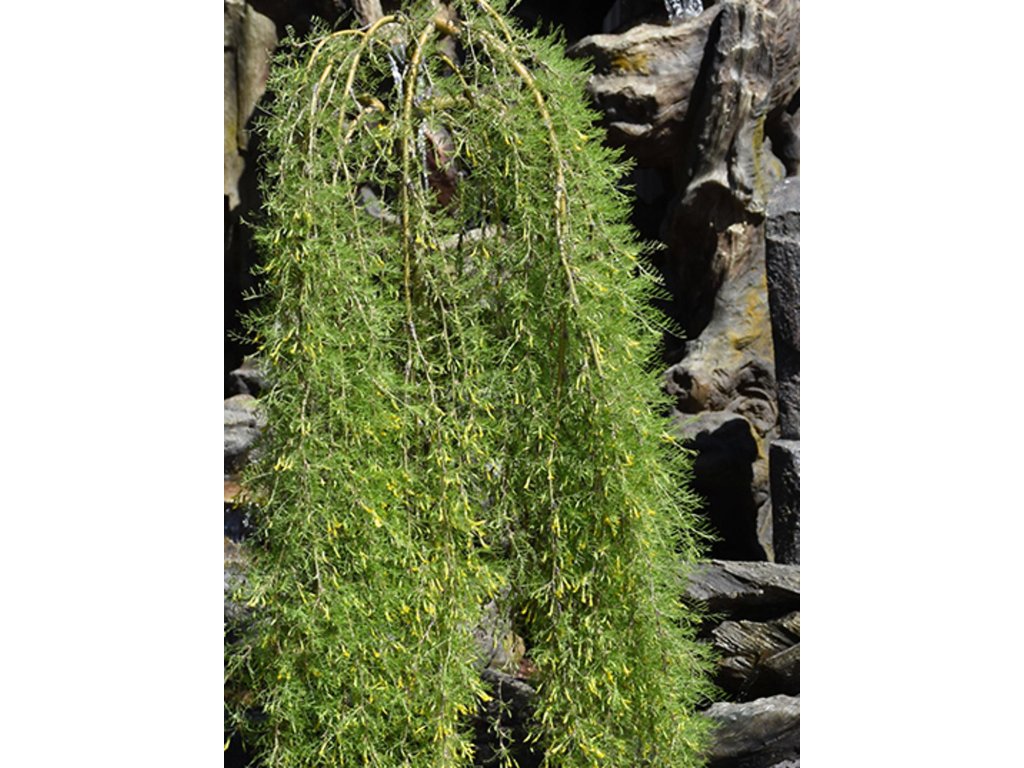 Baum-Erbsenstrauch 'Walker' - eine überhängende Sorte, die in Kanada als Kreuzung der Sorten 'Pendula' und 'Lorbergii' gezüchtet wurde. Die Selektion entstand an der Forschungsstation Morden in Manitoba und wurde durch die Auswahl von Professor J. Walker verbreitet. In der Praxis wird sie fast immer auf Stamm veredelt verkauft, sodass die Gesamthöhe von der Höhe der Unterlage abhängt, während die Krone einen schmalen, schirmartigen Überhang bildet. Fein gefiederte Blätter sind hellgrün, farnartig und wirken im Sommer wie ein leichter Schleier. Von Mai bis Juni erscheinen an den überhängenden Trieben schmetterlingsförmige gelbe Blüten, nach denen sich hellgrüne bis strohgelbe Hülsen von etwa 3–6 cm Länge bilden können. Es ist eine verholzende Pflanze aus der Familie der Hülsenfrüchtler, die Luftstickstoff bindet und auch mit ärmeren Böden gut zurechtkommt. Sie eignet sich als Solitärpflanze für den Vorgarten, für Kiesbeete und zur modernen Architektur, wo die feine Blatttextur die harten Linien von Stein und Beton mildert. Im Erwachsenenalter wird meist mit einer Höhe von 1,5–2 m und einer Breite von 1,5–2,5 m gerechnet, bei höheren Stammformen kann die Krone höher sitzen, die Überhänge bleiben jedoch gleich. Die jungen Triebe sind olivgrün bis gelblich und im Winter kommt die grafische Silhouette der überhängenden Äste zur Geltung. Die Blätter vergilben im Herbst und fallen ab, sodass der Kultivar einen leichten Sommerlook mit einer klaren Winterlinie abwechselt.