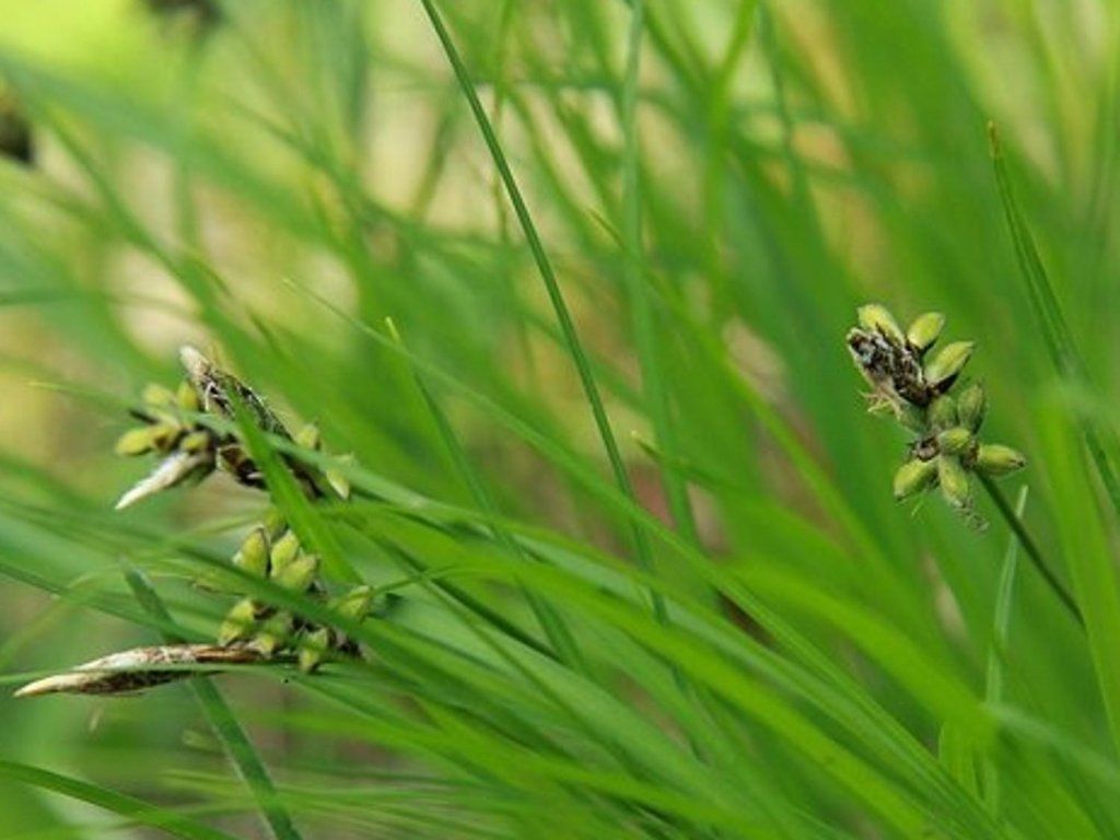 Berg-Segge - die Gattung Carex umfasst etwa 2000 verschiedene Arten, die sich sowohl in ihrem Wachstum als auch in ihren Ansprüchen unterscheiden. Typisch für Seggen ist die Tatsache, dass sie keine Knoten auf unverzweigten, dreikantigen Halmen bilden. Unisexuelle Blüten sind einhäusig oder zweihäusig; homogam oder heterogam. Nach der Blüte bilden sie die Frucht – eine Achäne. Größere Arten wachsen meist horstig, kleinere bilden dichte Polster. Die Blätter können je nach Art grün, weiß oder gelb und unterschiedlich panaschiert sein.