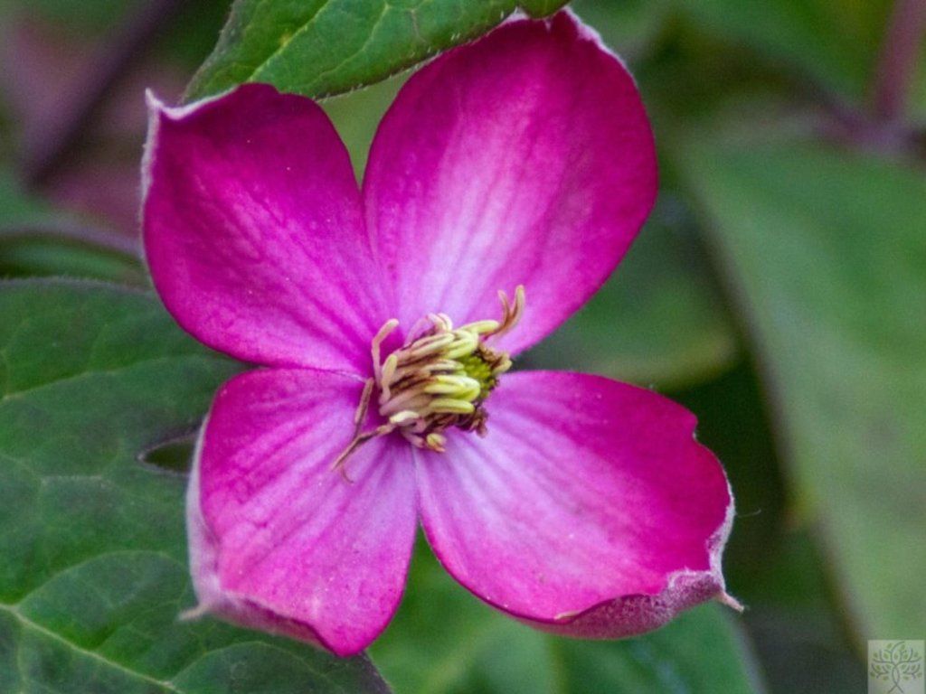 Bergenie 'Freda' - eine Kultivarsorte der Bergenie aus den Himalaya-Regionen. Es handelt sich um eine stark wachsende, verholzende Kletterpflanze, die unter geeigneten Bedingungen im Garten eine Höhe von 3–5 m erreicht und ein dichtes, verworrenes Triebnetz bildet. Junge Blätter weisen einen ausgeprägten bronzefarbenen bis purpurnen Farbton auf, später verfärben sie sich dunkelgrün, was der Pflanze auch außerhalb der Blütezeit einen interessanten Effekt verleiht. Ende des Frühlings, normalerweise im Mai bis Anfang Juni, sind die Stängel mit einer Vielzahl einfacher Blüten mit einem Durchmesser von etwa 4–5 cm bedeckt. Die Blütenblätter sind rosa-kirschrot mit einem dunkleren Rand, in der Mitte ragen cremefarbene Staubgefäße hervor. Die Blüten verströmen einen zarten süßen Duft, der typisch für die Montana-Gruppe ist. Die Sorte eignet sich hervorragend für die romantische Begrünung von Pergolen, Pavillons, älteren Obstbäumen, hochgewachsenen Sträuchern oder Nadelbäumen, wo sie im Frühling einen auffälligen Blütenvorhang bildet. Die Clematis ist insgesamt ein schönes Element für Gärten und bringt Farbe und ein einzigartiges Aussehen in jeden Garten. Sie ist nicht anspruchsvoll im Anbau, daher ist sie sowohl für Anfänger als auch für erfahrene Gärtner geeignet. Gehört zur 1. Schnittgruppe der Clematis.