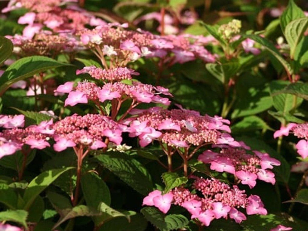 Hortensie serrata 'Captain America' - ein anmutiger, kompakter Strauch, der sich durch seinen wunderschönen Blütenstand auszeichnet.Diese Sorte erreicht im ausgewachsenen Zustand eine Höhe und Breite von etwa 1 - 1,5 m. Die Blätter haben eine frische grüne Farbe und nehmen im Herbst Brauntöne an. Sie haben eine leicht längliche Form und sind an der Spitze spitz. Im Juni und Juli schmücken wunderschöne Blüten die Pflanze. Die Blüte ist flach und besteht aus kleinen rosa Blüten. Die Intensität der Färbung kann sich mit der Zeit vertiefen. Die Pflanze eignet sich für Gruppenpflanzungen, kommt aber auch als Solitär hervorragend zur Geltung. Insgesamt ist die Hortensie ein beliebtes Element für Gärten und verleiht jedem Garten ein zartes und romantisches Aussehen.