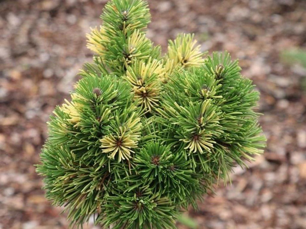 Bergkiefer 'Albovariegata Panoch' - eine bezaubernde Zwergkiefer-Sorte, die sich durch ihre kompakte und leicht unregelmäßige, kugelförmige Gestalt sowie langsames Wachstum auszeichnet. Diese spezielle Sorte stellt ein schönes Beispiel für eine Bergkiefer dar, die sich durch ihr buschiges Aussehen und ihr moderates Wachstum auszeichnet. Ihre zweifarbigen Nadeln sind ein echter Blickfang – die Kombination aus sattem Grün und einem zarten, cremigen Gelb verleiht der Nadelbaumart einen unverwechselbaren Charme. Eine ausgezeichnete Wahl für alle, die eine pflegeleichte und ästhetisch ansprechende Pflanze suchen, die jeden Gartenraum mit ihrem einzigartigen Aussehen belebt.