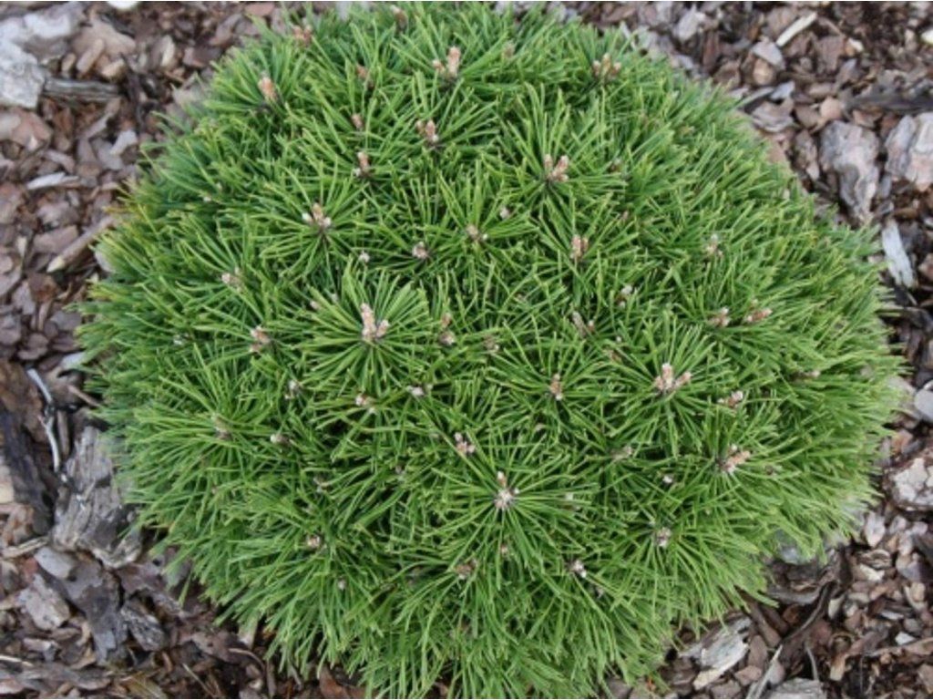 Kiefer 'Benjamin' - Zwergform, immergrüner Kultivar der Bergkiefer, die in den Bergregionen Mittel- und Südeuropas auf Felsen, Schutt und Moorböden natürlich vorkommt. In der Gärtnerei wurde sie als eine Selektion aus einem Hexenbesen verbreitet, erstmals erwähnt 1980, mit dem Züchter Walter Nagel aus dem deutschen Bretten. Sie bildet einen dichten, flachkugeligen bis polsterförmigen Strauch mit langsamem Wuchs, normalerweise 3–5 cm pro Jahr. Die Nadeln wachsen in Büscheln zu je zweien, sind sehr kurz und steif, meist 2–3 cm lang, dunkel bis sattgrün und bleiben mehrere Jahre am Baum. Triebe sind kompakt, Knospen stark harzig, nach dem Zerreiben der Nadeln entfaltet sich ein feiner harziger Duft. Mit 10 Jahren ist er etwa 0,5 m hoch und bis zu 1,0 m breit, im Erwachsenenalter erreicht er normalerweise etwa 0,6–0,8 m × 0,8–1,0 m. Die Blütenbildung erfolgt im Juni bis Juli in Form von unauffälligen männlichen und weiblichen Zapfen, aus denen sich nach und nach eiförmige braune Zapfen entwickeln können, die im 2. bis 3. Jahr reifen. Kiefernharz wird traditionell in der Kosmetik und bei Inhalationen wegen seiner aromatischen ätherischen Öle verwendet. In der Komposition wirkt er natürlich an Steinen, Kies und Heidegärten, wo er sich gut mit Heidekraut, niedrigen Wacholderarten, trockenheitsliebenden Stauden und Zwiebelblumen kombinieren lässt. Wenn Sie eine Zwerg- und interessante Nadelbaumart suchen, die ein Stück Wald in Ihren Garten bringt, dann ist die Kiefer 'Benjamin' die beste Wahl.
