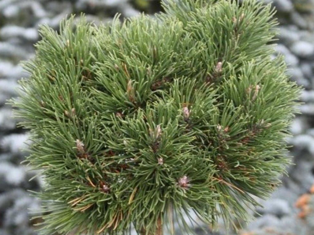 Zwergkiefer 'Heideperle' - ein Bergstrauch aus Europa, angepasst an Wind, Schnee und karge Böden im subalpinen Gürtel. Die Sorte 'Heideperle' gehört zu den sehr kompakten Selektionen, die einen ordentlichen, kugelförmigen bis kissenförmigen Strauch ohne ausgeprägten Haupttrieb bilden. Im Alter von zehn Jahren bewegt sie sich oft um 0,3–0,4 m, im ausgewachsenen Zustand erreicht sie normalerweise etwa 0,4–0,7 m in der Höhe und eine Breite von etwa 0,7 m, abhängig von Feuchtigkeit und Nährstoffversorgung. Die Nadeln sind kurz, in Büscheln zu zweit, gedrängt, grün mit einem leicht gräulichen Ton, im Frühjahr mit einem zart helleren Zuwachs, der die Struktur hervorhebt. Von Mai bis Juni erscheinen unauffällige männliche Blütenzapfen und später kleine Zapfen, die bei Reife braun sind und oft länger als eine Saison an den Zweigen verbleiben. Der harzige Duft entfaltet sich hauptsächlich beim Zerreiben der Nadeln, ansonsten wirkt die Sorte unauffällig und ruhig. 'Heideperle' kommt überall dort zum Einsatz, wo genaue Größe wichtig ist: als „grünes Kissen“ zwischen Steinen, im vorderen Teil des Beetes, am Rand eines Heidegartens oder in einem Topf am Eingang. Sie passt gut zu Sedum, Thymian, Lavendel, niedrigen Wacholderarten und veredelten Nadelbäumen auf Stamm, für die sie ein natürliches Fundament bildet.