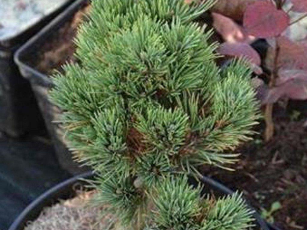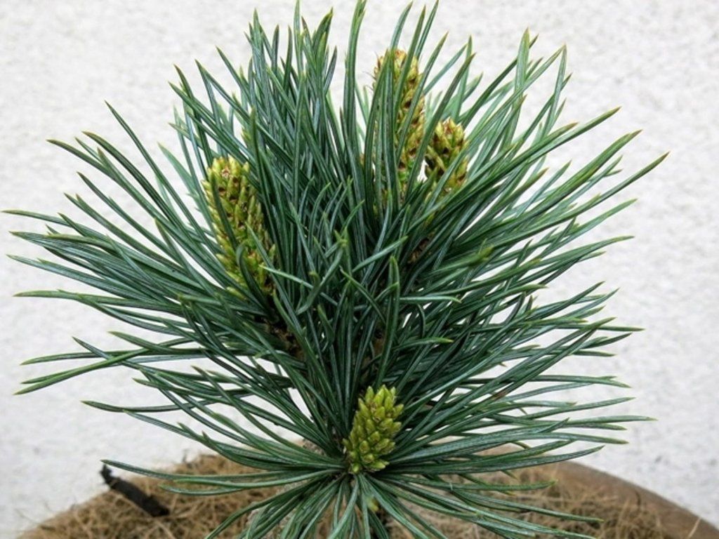 Biegsame Kiefer 'Parsons' - eine fünfnadelige Kiefer aus den Rocky Mountains Nordamerikas, wo sie in subalpinen Wäldern wächst und oft bis zur Baumgrenze vordringt. Die Art wird für ihre biegsamen, „flexiblen“ Zweige geschätzt, die einer Schneelast besser widerstehen, und für ihre weichen Nadeln mit einem zarten harzigen Aroma. Der Kultivar 'Parsons' gehört zu den Zwergformen mit sehr kurzen Internodien, wodurch er einen kompakten halbkugeligen bis kugelförmigen Strauch bildet. Nach etwa zehn Jahren erreicht er eine Höhe von ca. 0,4 m und eine ähnliche Breite, später wächst er langsam auf ca. 0,8–1 m heran. Im Frühjahr fallen die auffälligen gelbgrünen Knospen auf, die die Verzweigungsstruktur hervorheben. In der Komposition lässt sie sich gut mit Steingartenstauden, Heidekraut, niedrigen Wacholderarten und Steinen kombinieren, wo sie auch im Winter einen stabilen, immergrünen Akzent bildet. Die Nadeln sind in der Regel 7–10 cm lang, fühlen sich weich an und bewegen sich im Wind leicht. Dank ihres langsamen Wachstums eignet sich 'Parsons' für Vorgärten und Wege, wo ihr niedriges Profil und die Tatsache, dass sie keine regelmäßige Formgebung erfordert, geschätzt werden. Diese Eigenschaften machen sie zur idealen Wahl für kleine Gärten oder als Akzent in Alpinarien und Steingärten, wo ihre einzigartige Struktur und Farbkontraste voll zur Geltung kommen können.