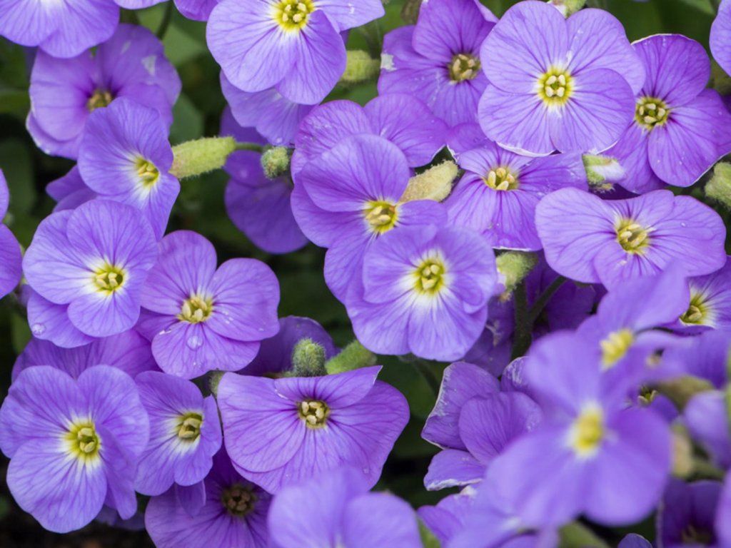 Aubrieta x cultorum 'Axcent Light Blue' - niedrige immergrüne Steingartenpflanze. Bildet niedrige, dichte und kompakte Polster mit schönem Laub. Von April bis Mai sind die Pflanzen vollständig mit Trauben von kleinen einfachen Blüten bedeckt. In diesem Fall handelt es sich um blau-violette Blüten. Er erreicht eine Höhe von 10 cm. Kann auf Mauern, Steingärten oder Staudenbeeten angebaut werden. Diese attraktive Sorte besticht auf den ersten Blick.