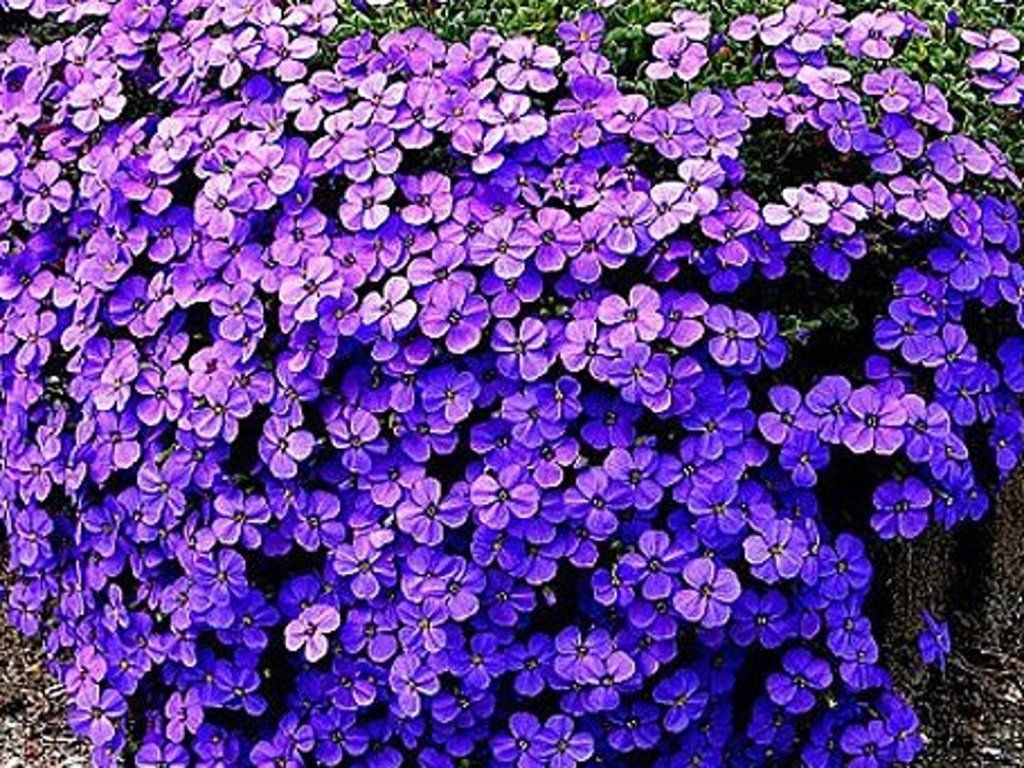 Aubrieta x cultorum ´Argenteovariegata´ - Aubrieta bildet niedrige, dichte und kompakte Polster mit schönen grau-silbernen Blättern. Zur Blütezeit im April und Mai sind die Pflanzen vollständig mit Trauben von kleinen, einfachen oder gefüllten Blüten bedeckt. In diesem Fall handelt es sich um violette Blüten. Er erreicht eine Höhe von 10 cm. Am besten gedeiht sie an einem sonnigen Standort in durchlässiger, nährstoffreicher Erde mit ausreichend Kalk. Sie bedeckt gut felsige Bereiche, Dachgärten und Mauern.