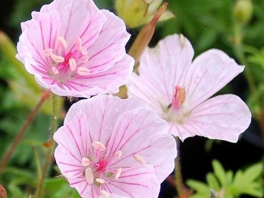 Blutroter Storchschnabel 'Lancastriense' - Erreicht eine Höhe von 25 cm. Blüht zartrosa von Juni bis August. Die Grundblätter trocknen fast ein, die stängelumfassenden sind gegenständig, mit handförmig geteilter Spreite. zeichnet sich durch schnelles Wachstum, ausgezeichnete Bodenbedeckung und lange, anhaltende Blüte aus. Er ist sehr anspruchslos und die Kultivierung ist auch für Anfänger geeignet.