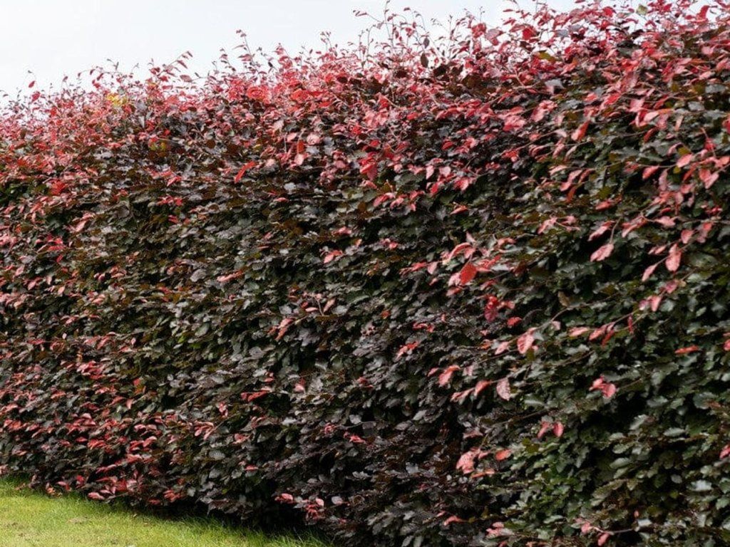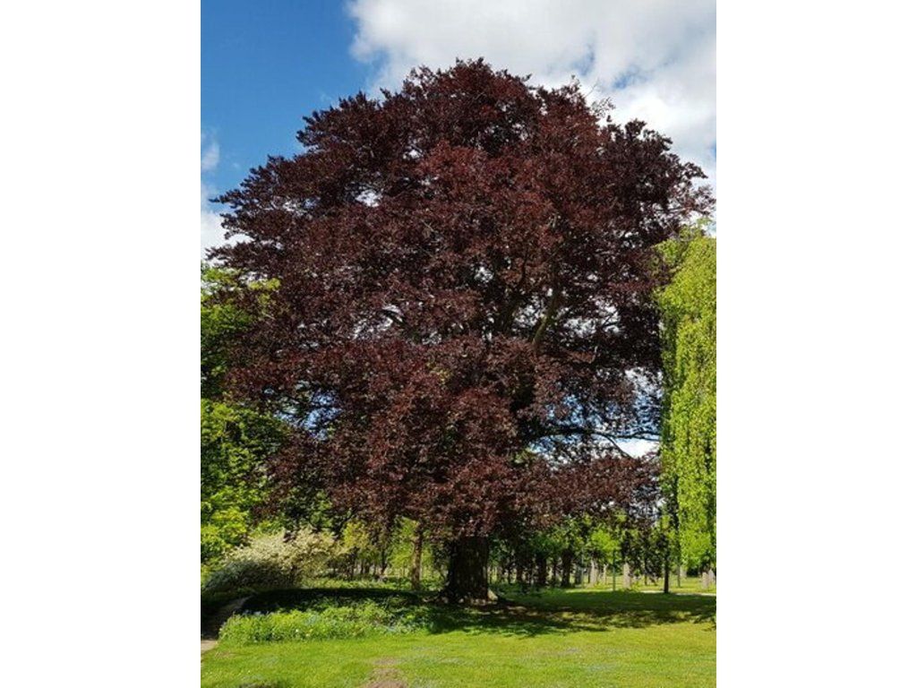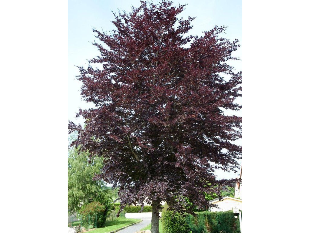 Rotbuche 'Atropunicea' - ist ein Juwel der Gartengestaltung. Er entfaltet seinen einzigartigen Charme durch auffällige rote Blätter, die das ganze Jahr über die Landschaft beleben. Der Baum, der eine Höhe von etwa 12 Metern erreicht, bildet eine dichte Krone und schmückt sich mit einem glatten Stamm. Seine großen, glänzenden Blätter entfalten sich im Frühling zu einem intensiven Rot, das im Sommer allmählich in dunklere Grüntöne übergeht. Im Herbst beeindrucken sie jedoch erneut mit satten Rottönen und schaffen so eine unvergessliche Herbstpalette im Garten. Atropunicea ist auch eine beliebte Laubpflanze, die, ähnlich wie Hainbuchen, bis zum Frühling trockene Blätter an den Zweigen behält. Sie wird als dekorativer Solitärbaum verwendet oder bildet malerische Alleen in Parks und Gärten.