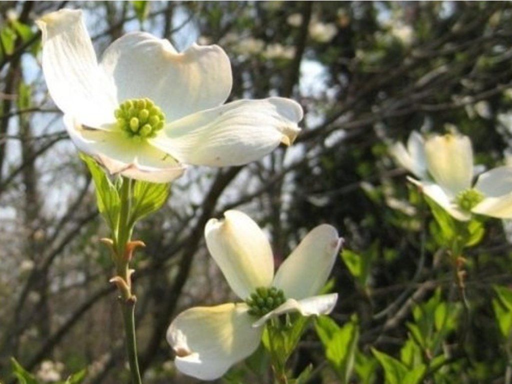 Hartriegel 'Cherokee Princess' - mittelwüchsiger, laubabwerfender Strauch mit aufrechtem, ausladendem Wuchs. Es handelt sich um eine gezüchtete, frostbeständige Sorte, die je nach Anbaubedingungen eine Höhe von 2-4 m bei ähnlicher Breite erreicht. Er zeichnet sich durch seine hochdekorativen Hochblätter aus, die eine schneeweiße Farbe mit einer unauffälligen Blüte in der Mitte haben. Mittelgrüne Blätter sind etwas heller als bei anderen Sorten und färben sich im Herbst attraktiv kupfern. Ende des Sommers schmücken den Strauch rote, ungenießbare Früchte. Erfüllt die Rolle einer Solitärpflanze in jedem Garten.