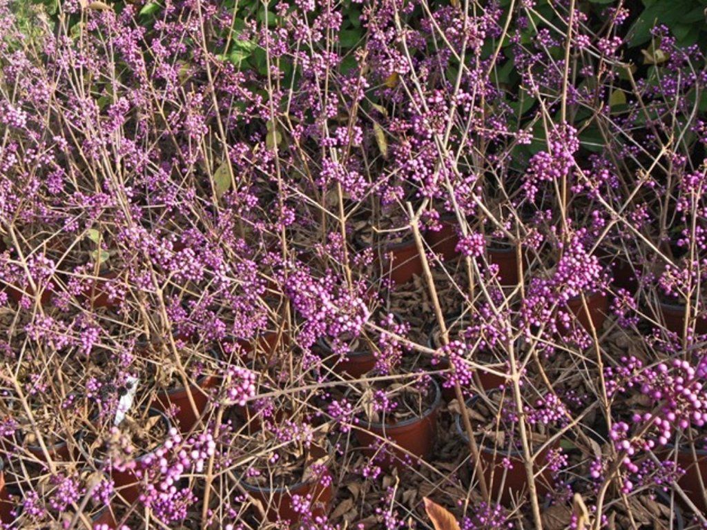 Die Schönfrucht Bodinier ist ein laubabwerfender Strauch oder kleiner Baum mit auffälligen violetten Beeren, die im Herbst an den Zweigenden charakteristisch sind. Sie erreicht eine Höhe von etwa 1,5 bis 2 m und hat eine ähnliche Breite. Sie blüht normalerweise vom Spätsommer bis zum Frühherbst. Sie stammt aus China und ist nicht nur für ihre dekorativen Früchte bekannt, sondern auch für interessante schmale Blätter, die im Herbst einen attraktiven gelb-grünen Farbton annehmen. Die Pflanze bevorzugt sonnige bis halbschattige Standorte mit gut durchlässigem Boden. Sie mag feuchte Standorte und verträgt verschiedene Bodentypen, einschließlich humoser bis lehmiger Böden, mit einer Toleranz gegenüber saurem bis neutralem pH-Wert (pH 5,6–7,5). Sie benötigt im Winter Schutz vor Kälte und kann Frostschäden erleiden. Obwohl sie Schnitt verträgt, ist dieser oft nicht notwendig und sie ist nicht anfällig für Schädlinge. Die violetten Beeren sind nicht nur wegen ihres Aussehens beliebt, sondern ziehen auch Vögel an, die sie gerne fressen, obwohl sie für den menschlichen Verzehr nicht geeignet sind. Sie haben eher einen ästhetischen Wert und tragen zur Attraktivität der Pflanze bei, und das vor allem in der Winterzeit, wenn sie dem Garten eine markante Farbe verleihen.