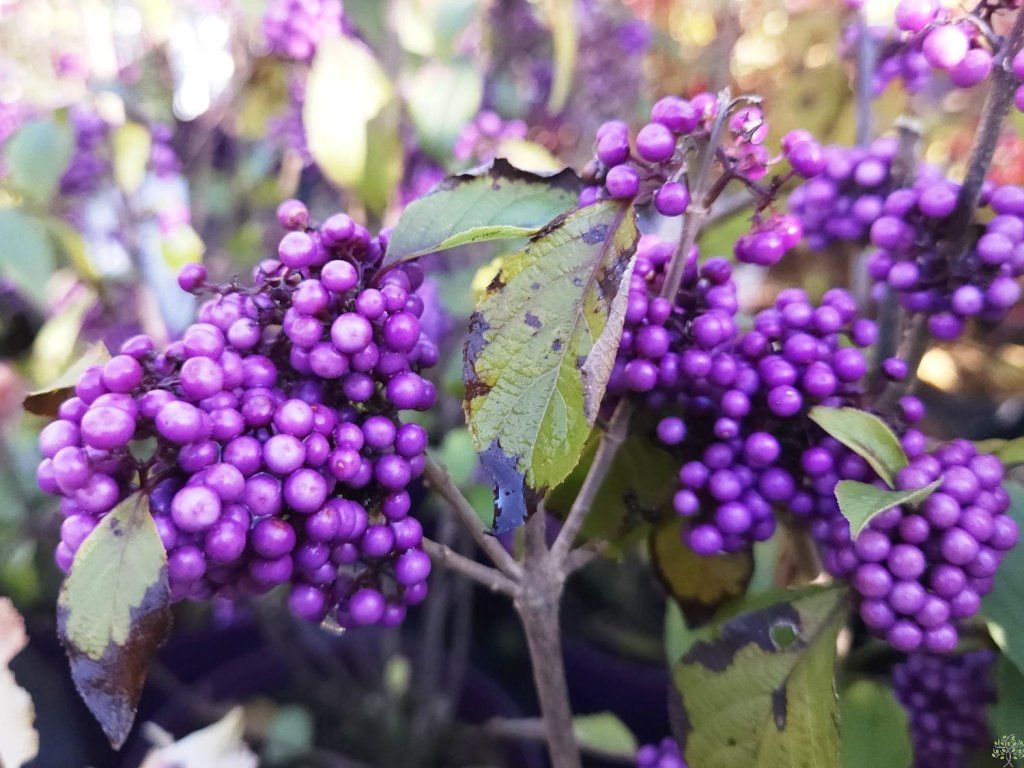 Die Schönfrucht Bodinier ist ein laubabwerfender Strauch oder kleiner Baum mit auffälligen violetten Beeren, die im Herbst an den Zweigenden charakteristisch sind. Sie erreicht eine Höhe von etwa 1,5 bis 2 m und hat eine ähnliche Breite. Sie blüht normalerweise vom Spätsommer bis zum Frühherbst. Sie stammt aus China und ist nicht nur für ihre dekorativen Früchte bekannt, sondern auch für interessante schmale Blätter, die im Herbst einen attraktiven gelb-grünen Farbton annehmen. Die Pflanze bevorzugt sonnige bis halbschattige Standorte mit gut durchlässigem Boden. Sie mag feuchte Standorte und verträgt verschiedene Bodentypen, einschließlich humoser bis lehmiger Böden, mit einer Toleranz gegenüber saurem bis neutralem pH-Wert (pH 5,6–7,5). Sie benötigt im Winter Schutz vor Kälte und kann Frostschäden erleiden. Obwohl sie Schnitt verträgt, ist dieser oft nicht notwendig und sie ist nicht anfällig für Schädlinge. Die violetten Beeren sind nicht nur wegen ihres Aussehens beliebt, sondern ziehen auch Vögel an, die sie gerne fressen, obwohl sie für den menschlichen Verzehr nicht geeignet sind. Sie haben eher einen ästhetischen Wert und tragen zur Attraktivität der Pflanze bei, und das vor allem in der Winterzeit, wenn sie dem Garten eine markante Farbe verleihen.