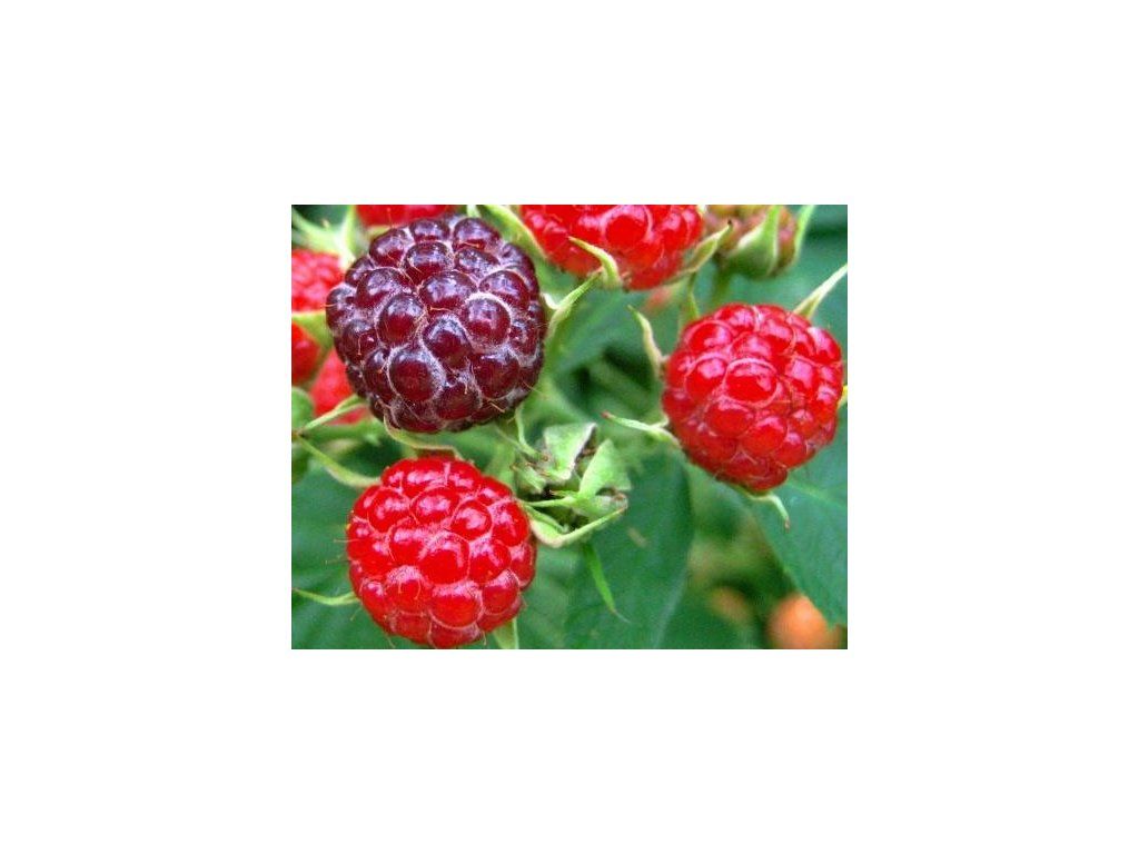 Brombeere 'Tricolor' - Der Name leitet sich von den großen, herzförmigen grünen Blättern ab, die sich im Herbst wunderschön verfärben, der Farbe der Blüten und der Farbe der Früchte. Blüht im Juli weiß. Große, süße rot-weinrote Früchte reifen im Spätsommer. Geeignet für den direkten Verzehr oder zur Weiterverarbeitung wie Einmachen und Einfrieren.