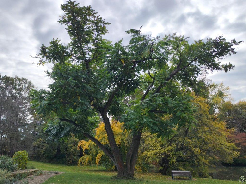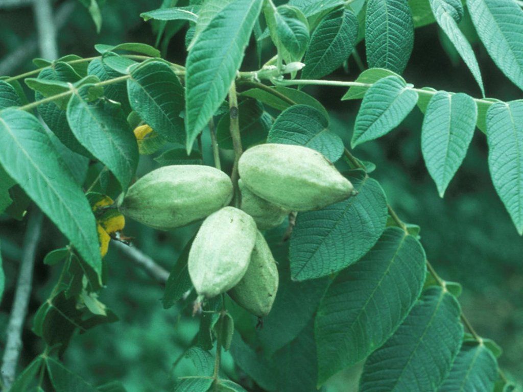 Schwarznuss - hoher Laubbaum, der bis zu einer Höhe von 30 Metern und einer Breite von bis zu 25 Metern wächst. Bildet eine ausladende, abgerundete Krone und meist mehrere Stämme. Er hat längliche grüne Blätter, die bis zu 70 Zentimeter lang sind. Er bildet Früchte – Nüsse, die einen Durchmesser von bis zu 8 Zentimetern haben können. Zwischen dem 15. und 20. Lebensjahr beginnt der Baum zu tragen. Die Nüsschen sind süß, schmackhaft und haben einen buttrigen Geschmack. Die Rinde des Baumes ist grau und glatt. In der Jugend sind die Blätter des Baumes klebrig und beidseitig behaart. Im Herbst verfärben sie sich zu einem satten Gelb.
