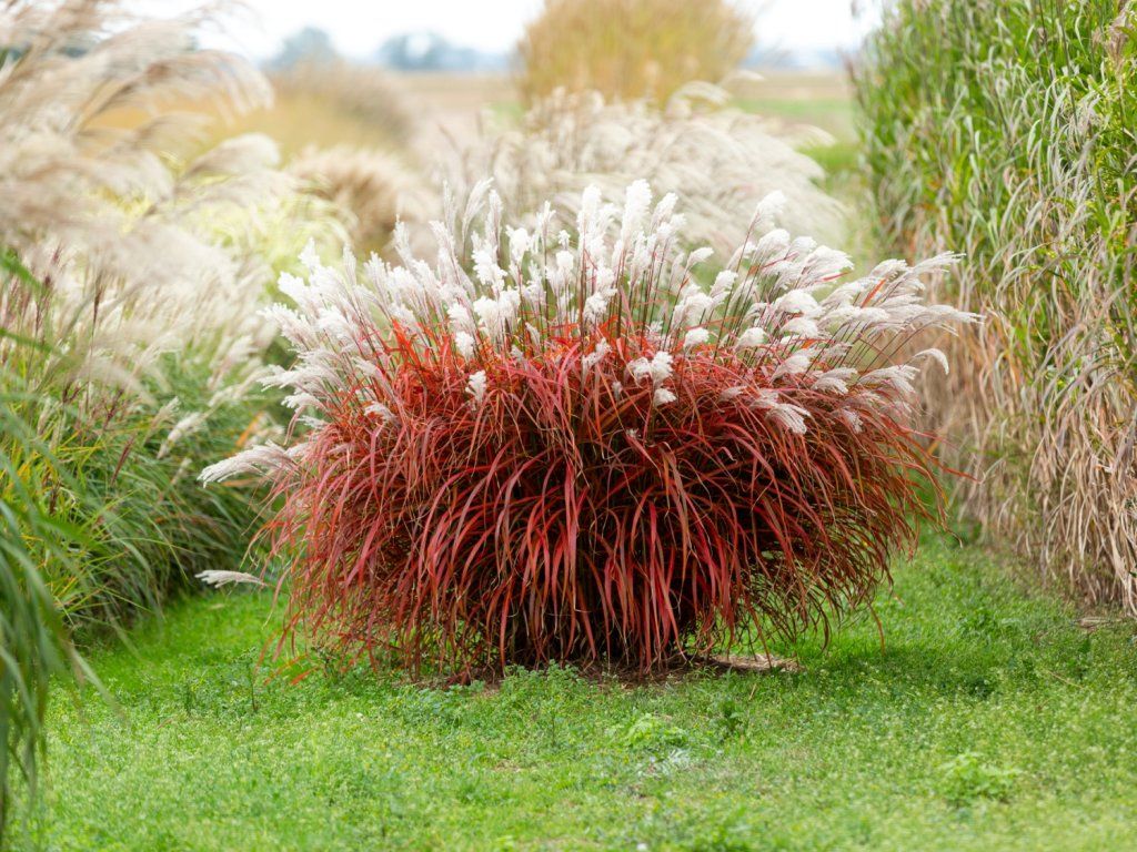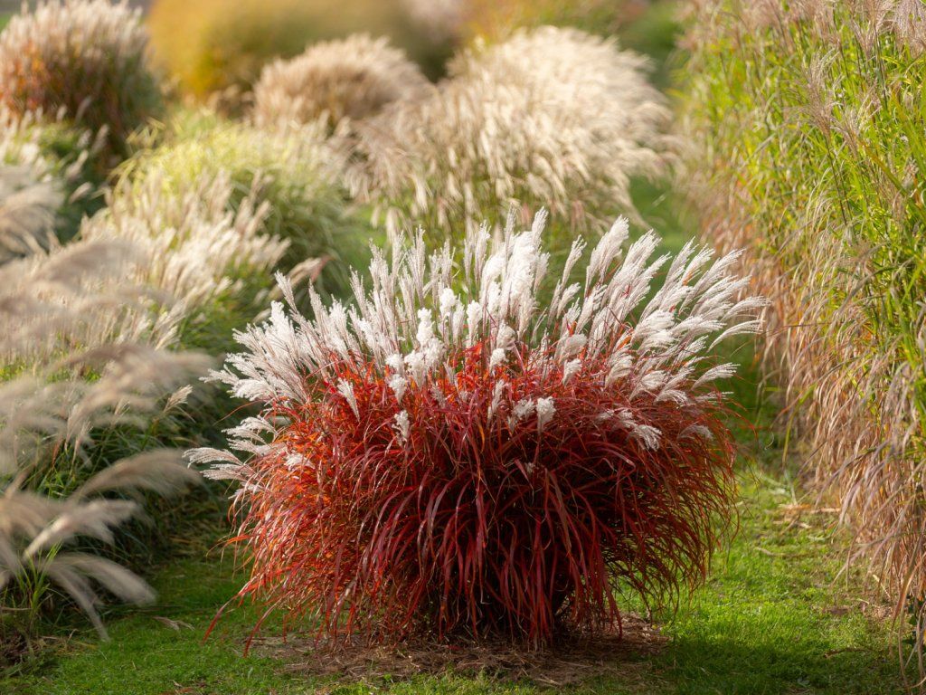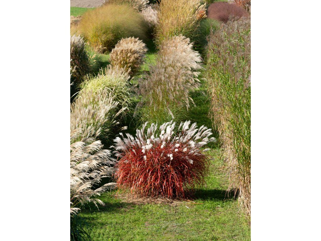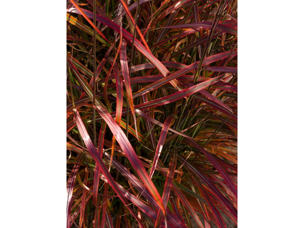 Chinesisches Lampenputzergras 'Lady in Red' – stammt aus Ostasien, wo es auf sonnigen Hängen und an den Rändern feuchterer Wiesen wächst. Die Sorte 'Lady in Red' wurde in Polen in der Baumschule Słowińscy gezüchtet und ist durch das Züchtungsrecht geschützt. Sie bildet einen aufrechten, dichten Horst aus schmalen Blättern, die im Sommer eine linealische Form und einen fein rauen Rand haben. Junge Belaubung ist normalerweise grün, im Sommer kommen weinrote bis purpurne Farbtöne hinzu und im Herbst färbt sich das Ganze in Rottönen. Von August bis Oktober erheben sich über den Blättern federartige Blütenrispen. Zur Blütezeit wirken sie silbrig-weiß und trocknen später zu einer strohigen Farbe, sodass die Pflanze auch im Winter im Garten wirkt. Der Horst erreicht normalerweise eine Höhe von etwa 1,2–1,6 m und eine Breite von 0,8–1,0 m. Die Rispen können als Schnittblumen verwendet werden, insbesondere für Trockenbindereien. Im Winter verwandeln sie sich in leuchtende, weiße Wedel. Insgesamt ist diese Art des Chinesischen Lampenputzergrases ein schönes Element für Gärten, das Farbe und ein einzigartiges Aussehen in jeden Garten bringt. Das Chinaschilf ist dornenlos, ungiftig und hat keinen ausgeprägten Duft. In Kompositionen passt es gut zu Sonnenhut (Echinacea), Fetthenne (Hylotelephium), Perowskie (Perovskia) und Herbstastern.