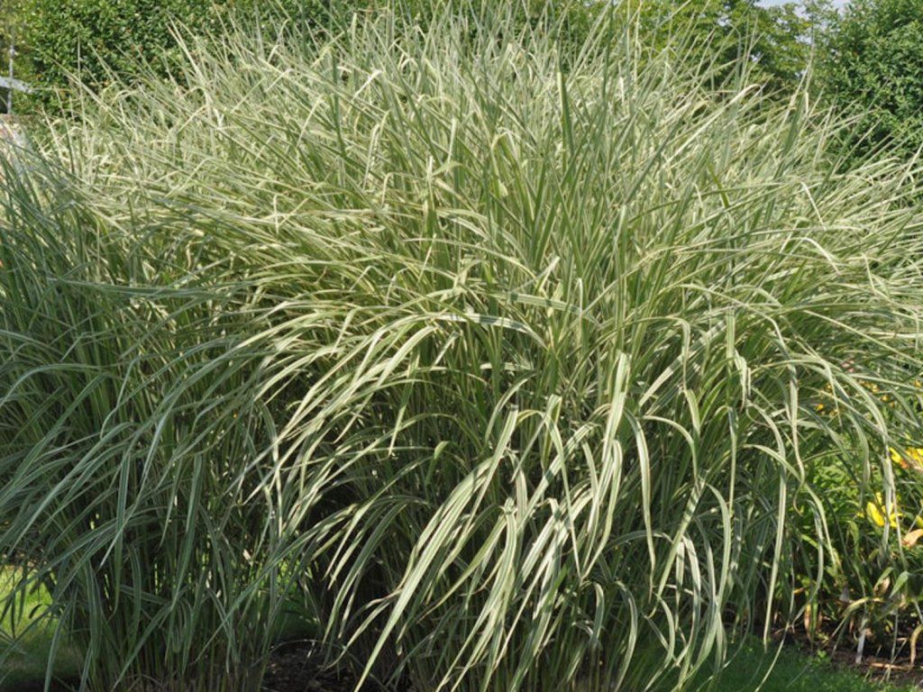Chinaschilf ´Rigoletto´ - maußergewöhnlich schöne Ziergräser, zeichnet sich durch grüne Blätter mit mehreren weißen Streifen aus. Blüht mit rosa Blütenständen vom Spätsommer bis zum Herbst. Im Herbst verfärben sich die Blätter bronzefarben bis braun. Kommt sowohl als Solitär als auch in einem gemischten Staudenbeet zusammen mit anderen Stauden und niedrig wachsenden Ziergräsern zur Geltung. Wird im Frühjahr geschnitten.