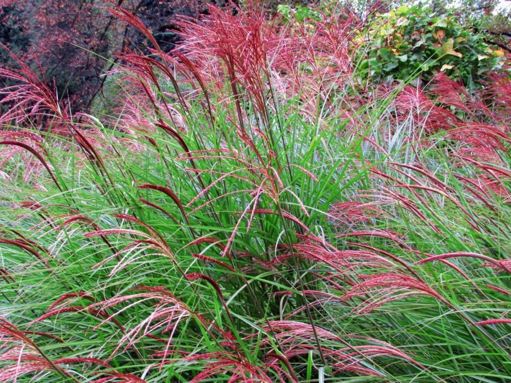 Chinaschilf 'Rotfeder' - ein auffälliges und charmantes Ziergras, das für seine aufrechten Horste und wunderschönen rötlichen Blütenrispen geschätzt wird. Diese Sorte erreicht eine Höhe von 150–180 cm und bildet ordentliche, bogenförmig überhängende Blätter mit tiefgrüner Farbe und schmalen Mittelnerven. Im Herbst nehmen die Blätter warme bronzene bis rötliche Töne an und tragen so zur Herbstfärbung des Gartens bei. Von September bis Oktober erscheinen wunderschöne rotbraune Blütenrispen, die sich allmählich zu einem silbrig-rosa Farbton entwickeln. Sie sind auch zum Trocknen und zur Herstellung von Dekorationen ideal. Sie ist voll frostbeständig und eignet sich gut für Staudenbeete, als Solitärpflanze oder in Kombination mit anderen Ziergräsern und Blumen. Diese Sorte verleiht dem Garten ein dramatisches Aussehen und Bewegung, besonders im Wind.