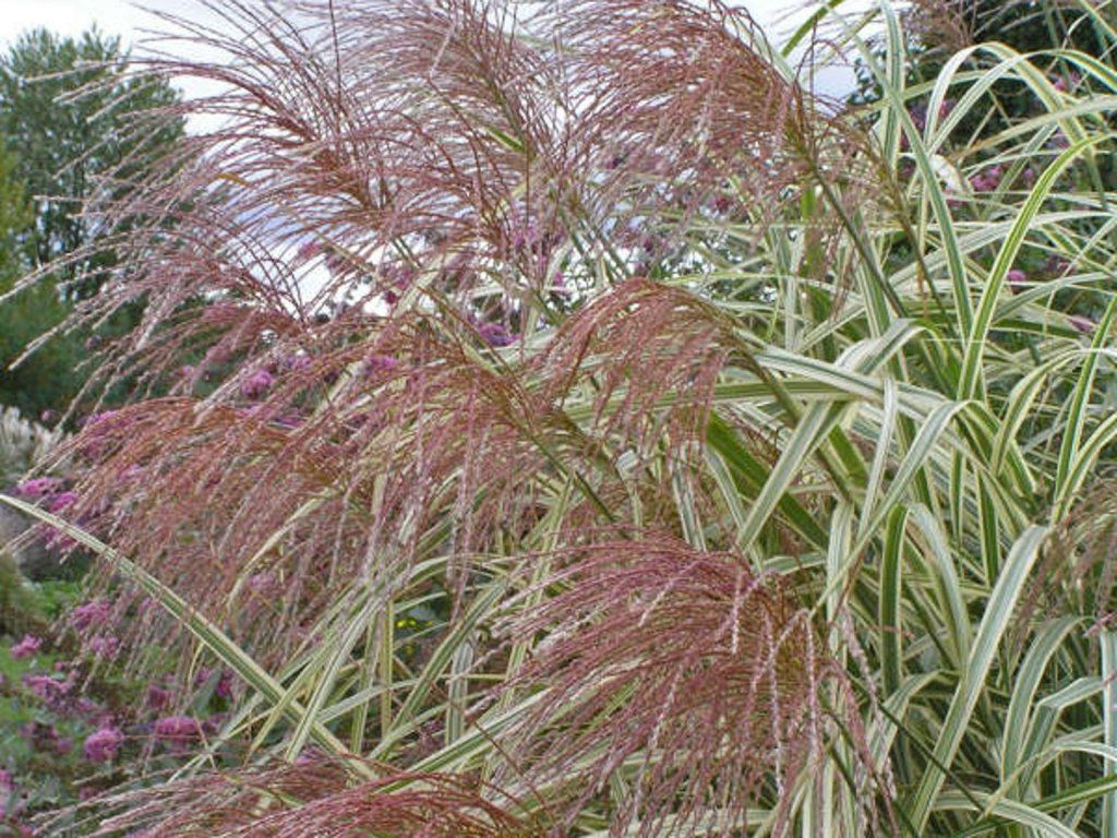 Chinaschilf 'Variegatus' - eine horstartige Grasart aus Ostasien, geschätzt für ihren späten Effekt und ihre Winterstruktur. Die Sorte 'Variegatus' gehört zu den panaschierten Formen, die auch dort mit Licht spielen, wo dunkleres Grün vorherrscht. Sie bildet einen bogenförmigen, „fontänenartigen“ Horst mit überhängenden Blättern, der im ausgewachsenen Zustand normalerweise etwa 1,5 m hoch und während der Blüte höher wird und aufgrund seiner Ausdehnung bis zu etwa 2 m Breite erreichen kann. Die Blätter sind weiß-grün gestreift, wobei die helle Farbe aus der Ferne auffällt. Ende des Sommers erscheinen Rispen kleiner Ährchen, die unter unseren Bedingungen am häufigsten im September bis Oktober auftreten. Anfangs haben sie einen weinroten Farbton, werden allmählich silbrig und gehen nach der Reifung in trockene Blütenstände über. Das Laub trocknet nach Frösten zu strohigen Tönen ein und der Horst bleibt bis zum Frühling dekorativ. Er findet Anwendung als Solitär, in Gruppen als heller Akzent und als saisonale Sichtschutzwand am Sitzplatz. In Kombination mit dunkelblättrigen Berberitzen, purpurfarbenen Rudbeckien oder mit blau blühenden Katzenminzen schafft er einen Kontrast, der auch ohne Blüten gut zur Geltung kommt. Die getrockneten Rispen eignen sich für winterliche Gestecke, der Duft ist nicht ausgeprägt. Dank seiner gestreiften Blätter bringt er besonderen Charme und optisches Interesse in den Garten. Er kann auch ein hervorragendes Element in Außenkübeln oder Containern sein.